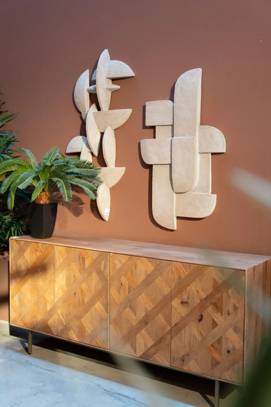- Die kunstvoll gearbeitete Front besticht durch ihr grafisches, harmonisches Rautenmuster und intensiver Holzmaserung
