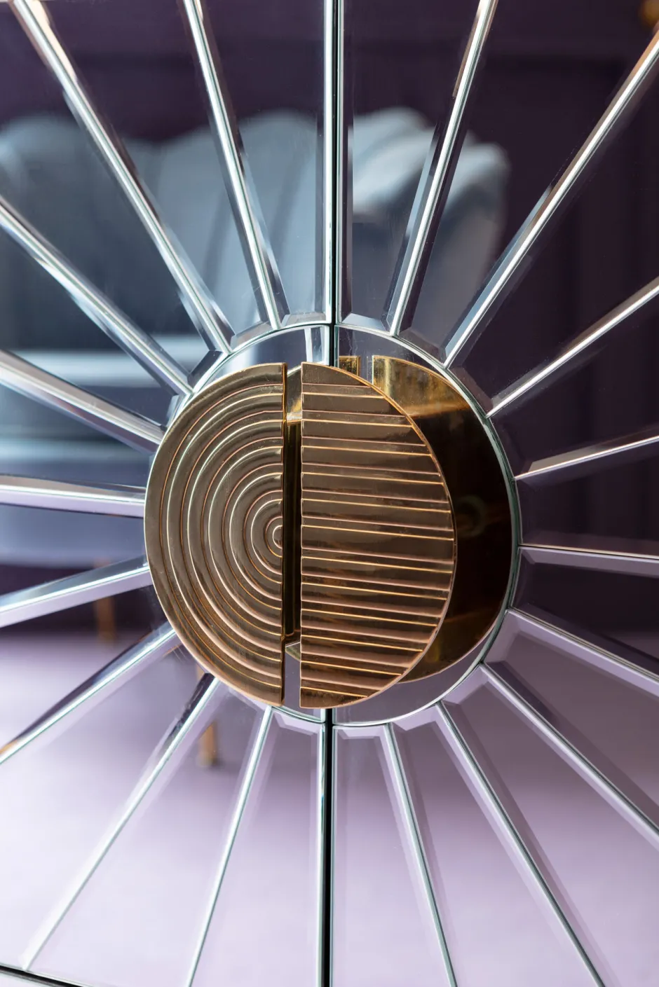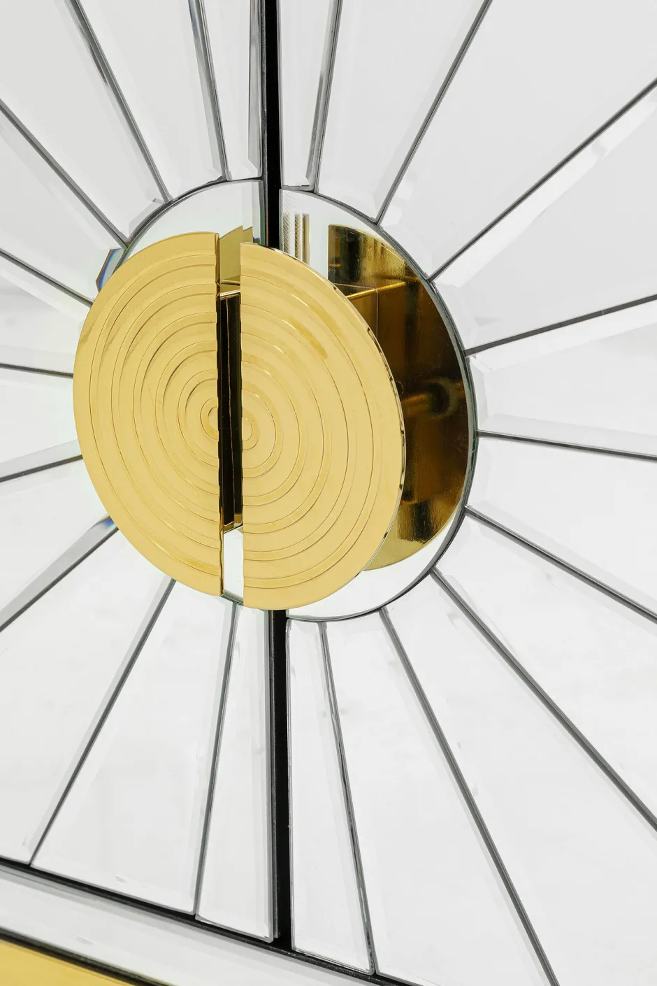 - Das Dekor aus facettierten Spiegelelementen ist kunstvoll wie ein Mosaik zusammengesetzt. Das standfeste Gestell aus Stahl ist goldfarben lackiert