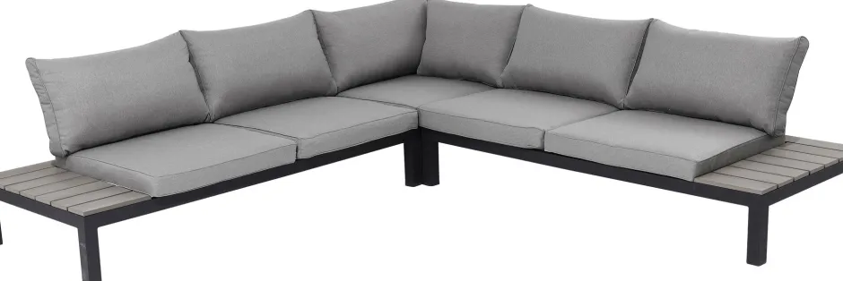 - Robust: wetterbeständige und pflegeleichte Outdoor Sitzgruppe mit praktischen Ablageflächen und Tisch in Holzoptik