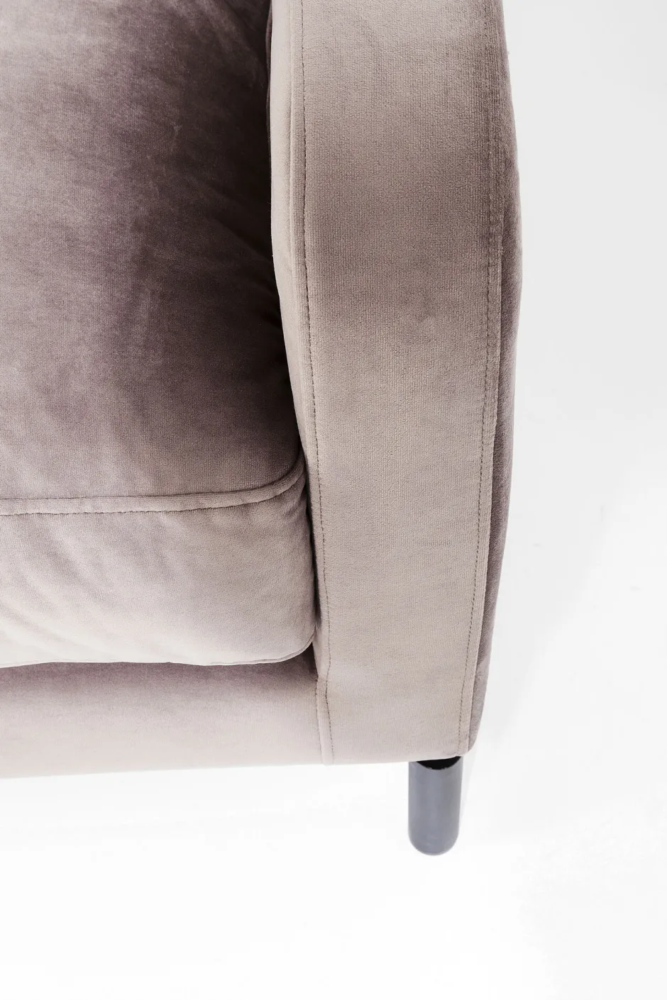 - Ein Dreisitzer-Sofa in Samt aus der Serie Lullaby mit eleganter, moderner Formensprache, abgerundete Armlehnen und zarte Füße sind feine Details