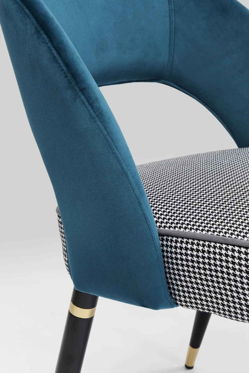 - Gepolsterter, superbequemer Stuhl mit stylish kombiniertem Bezug in Petrol und Hahnentritt-Muster