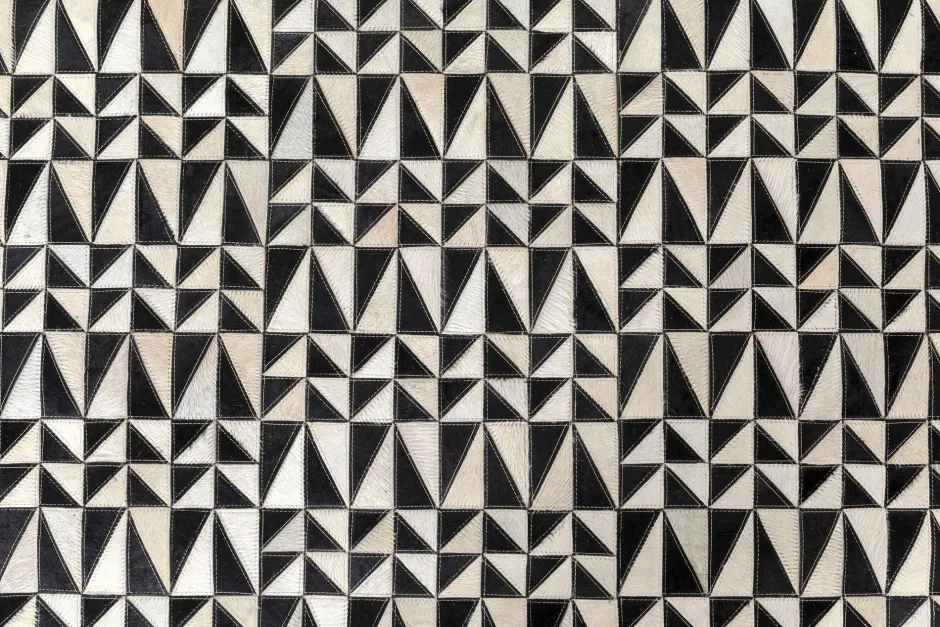 - Rechteckiger Fellteppich in Schwarzweiß-Patchwork, wertige Handarbeit
