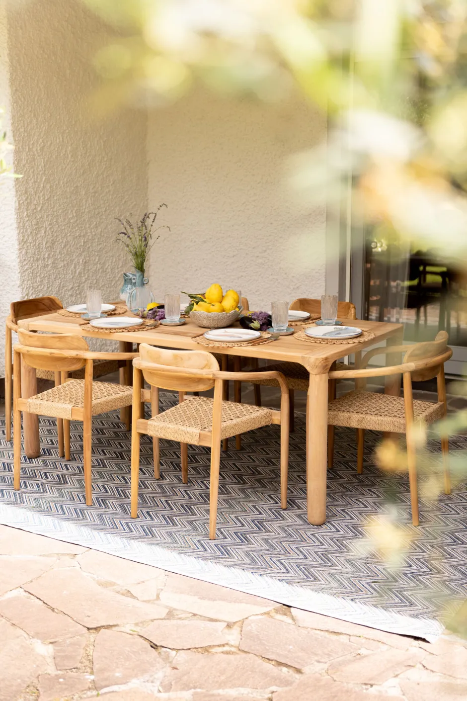- Das klassische Design und die natürlichen Materialien werten jeden Essbereich auf – drinnen oder draußen