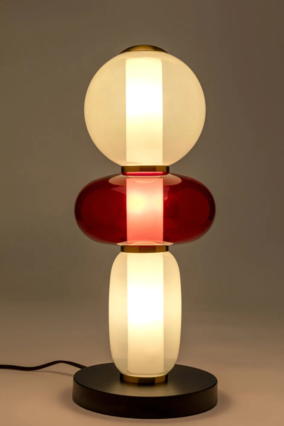 - Weiß-rote Tischlampe aus Glas in Manufaktur-Qualität, 43 x 18 x 18 Zentimeter (H/B/T)