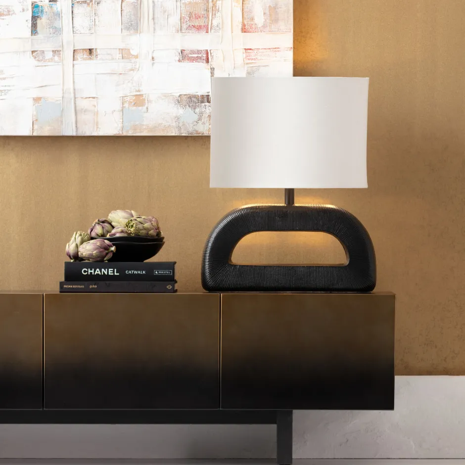 - Große, moderne Tischlampe in Schwarz-Weiß, 52 x 45.8 x 25.4 Zentimeter (H/B/T)