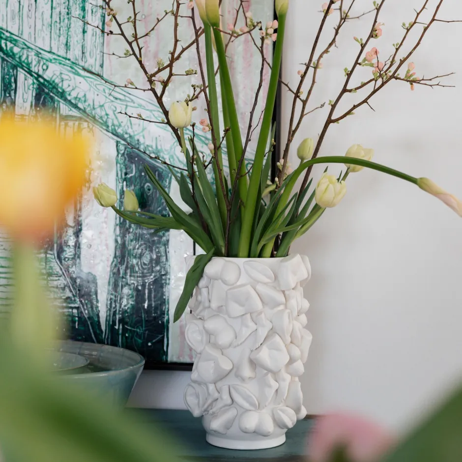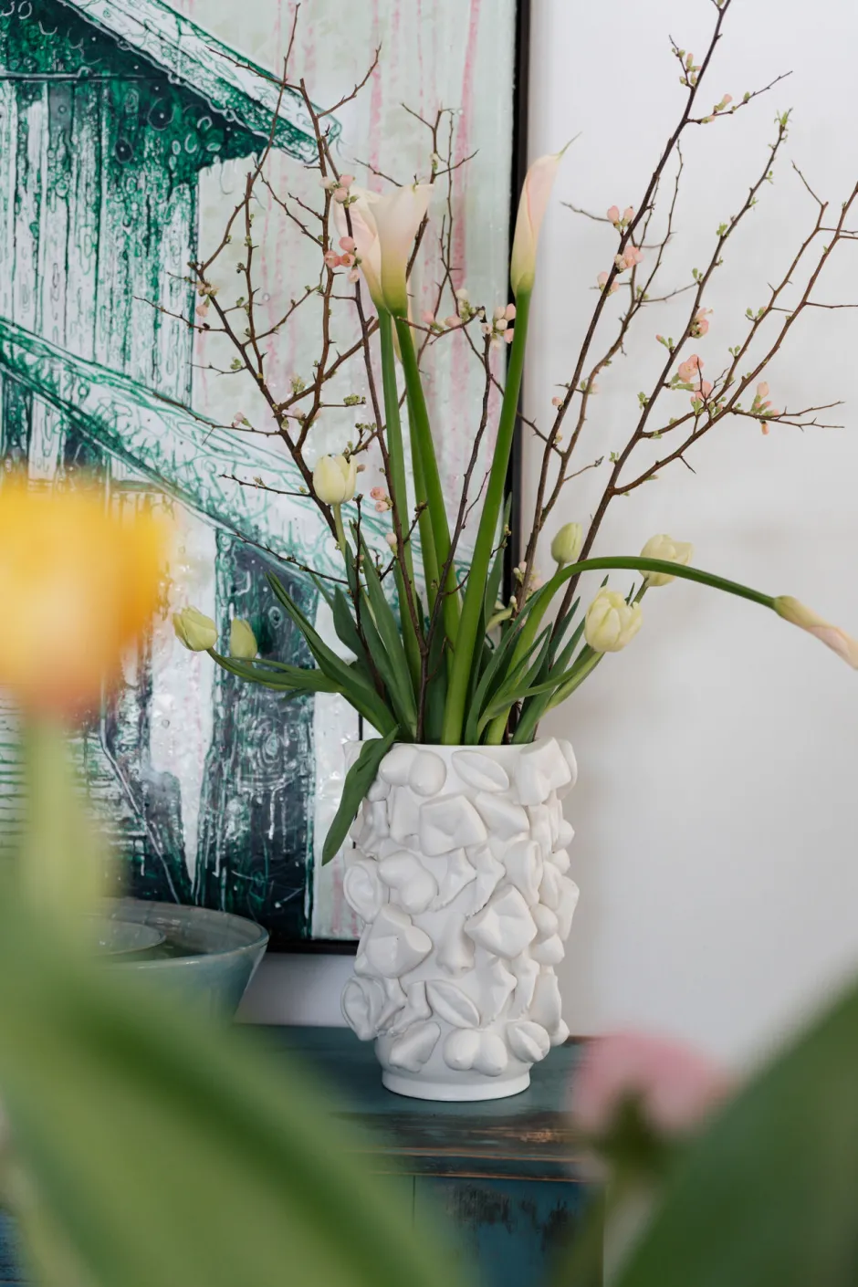- Weiße Vase aus Porzellan mit 3D.Applikationen, 36 x 25 x 25 Zentimeter (H/B/T)
