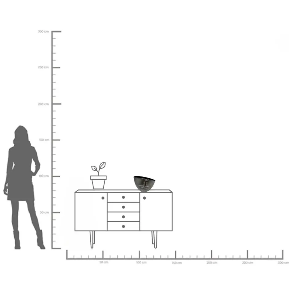 - Graue Vase in Schalenform aus Metall, 31 x 22 x 11 cm (H/B/T)