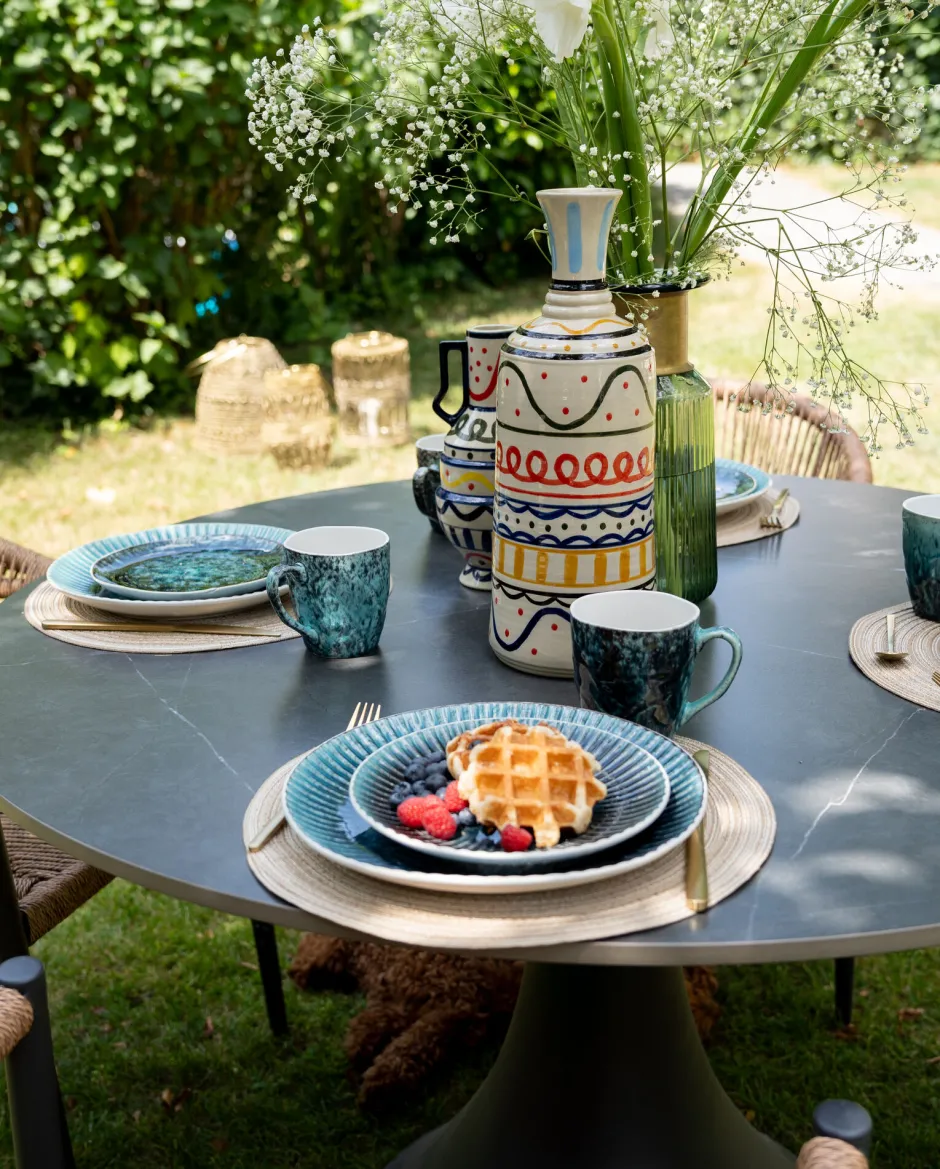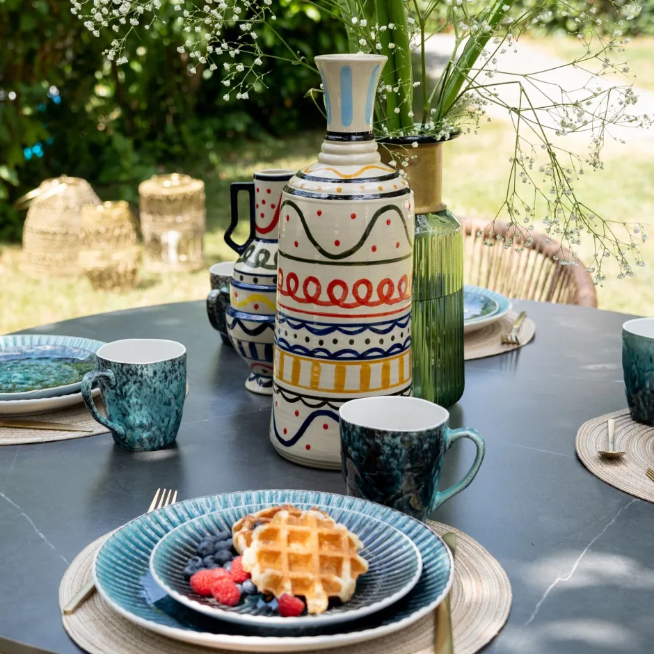 - Jedes Stück ist ein Unikat aus Steinzeug, das in Handarbeit hergestellt und bemalt wird