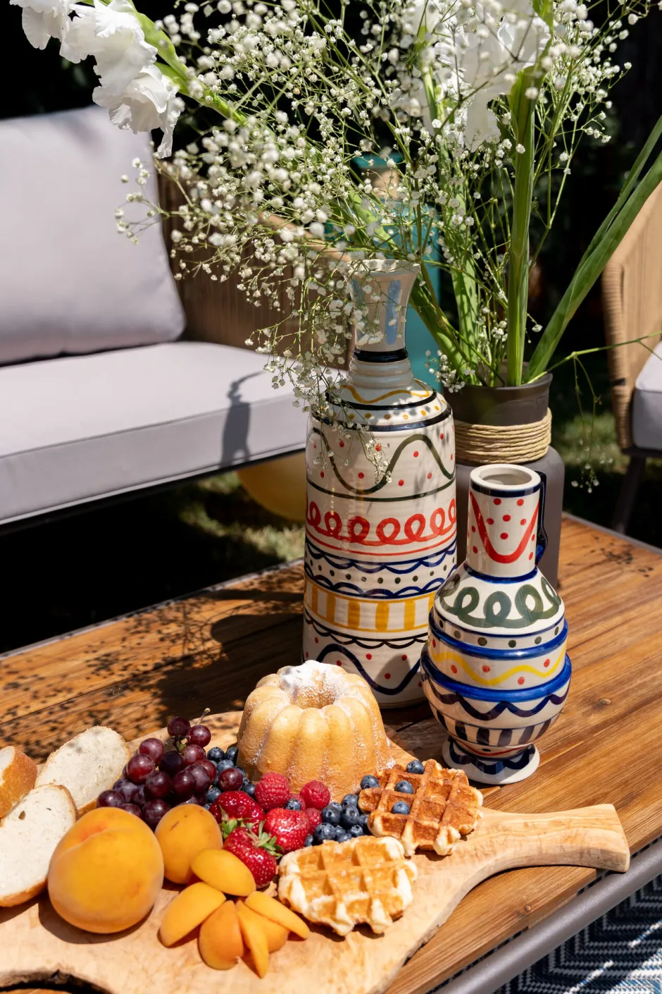 - Die kräftige Farben und traditionellen Formen der Vasen unterstreichen den ländlichen, mediterranen Wohnstil