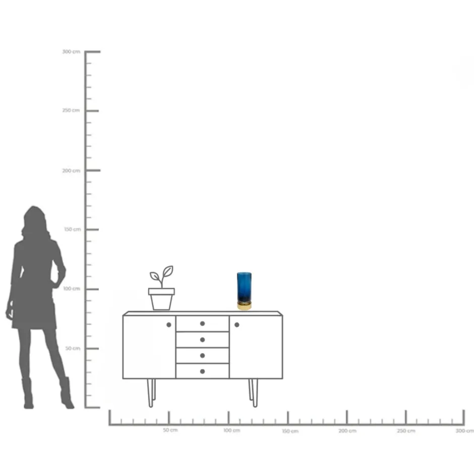 - Blaue Zylinder-Glasvase mit Gold-Akzent, 31 x 12 x 12 Zentimeter (H/B/T)