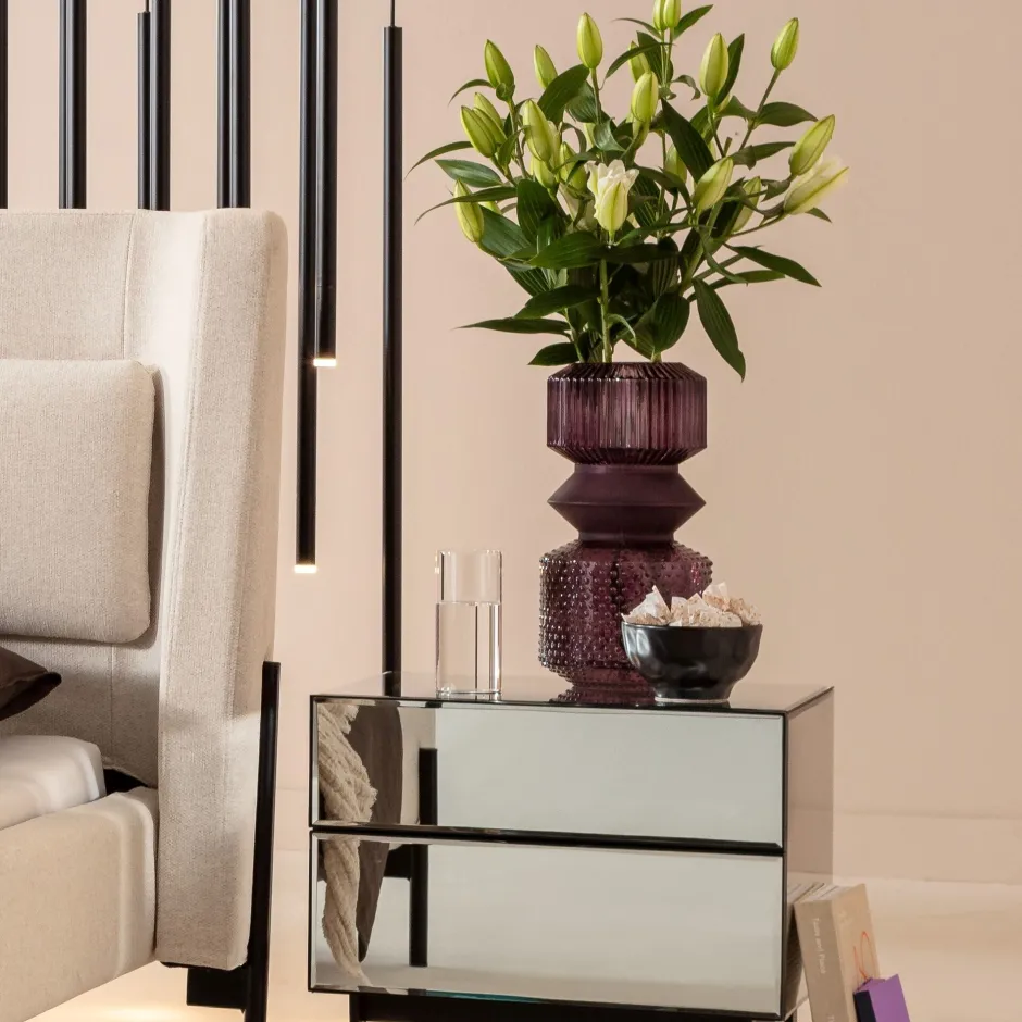 - Lilafarbene Blumenvase aus Glas, 36 x 18 x 18 Zentimeter (H/B/T)