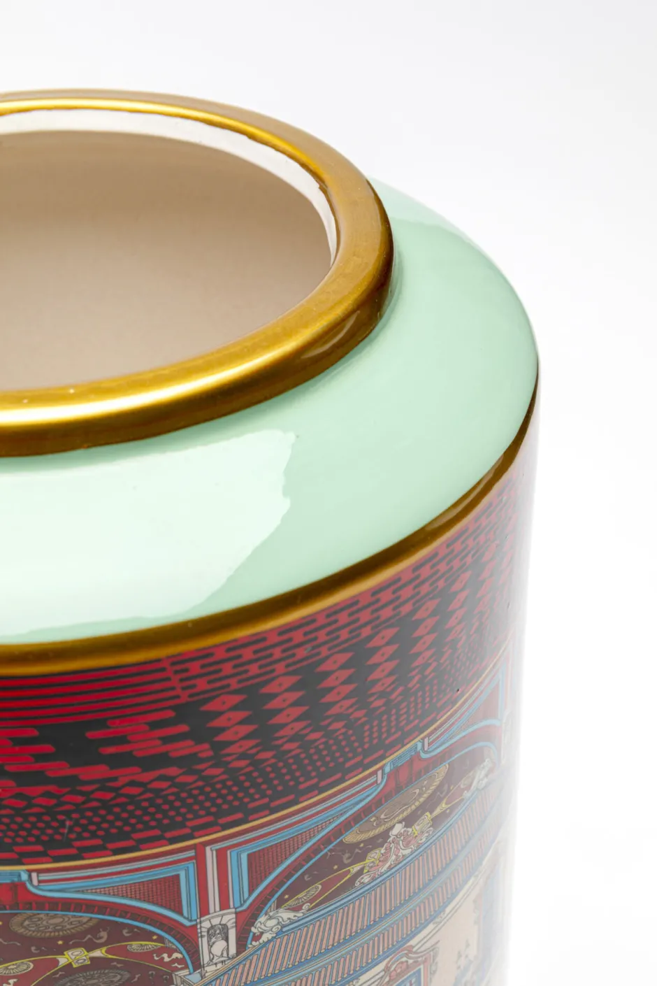 - Diese Vase besticht durch ihr kunstvolles Design, das opulente Palastmotiv und lebendige Farben