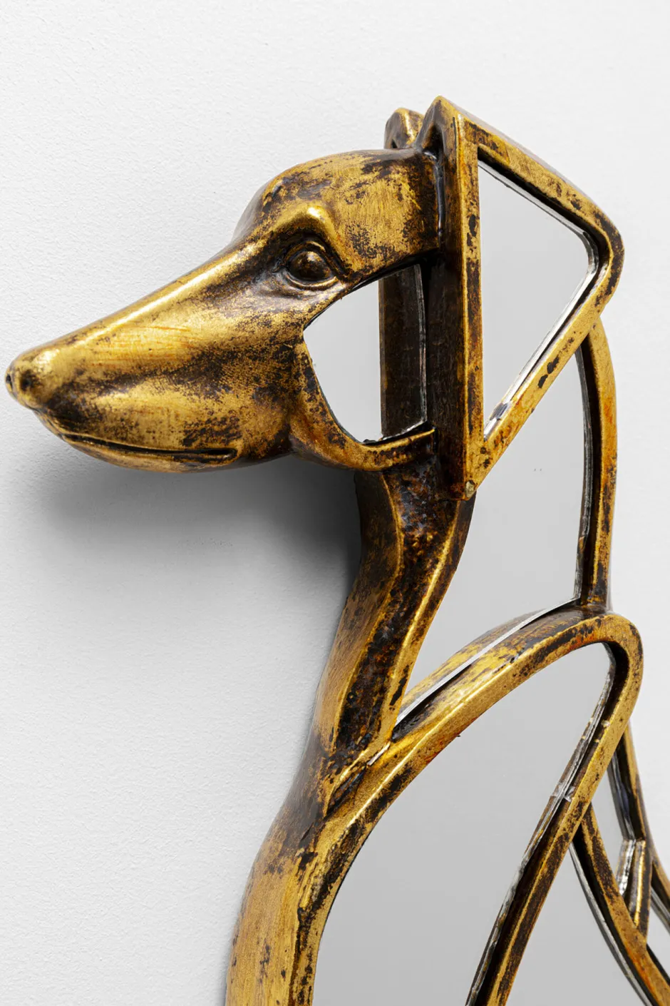 - Die Spiegel-Elemente des eleganten Hundes lassen Räume optisch größer wirken