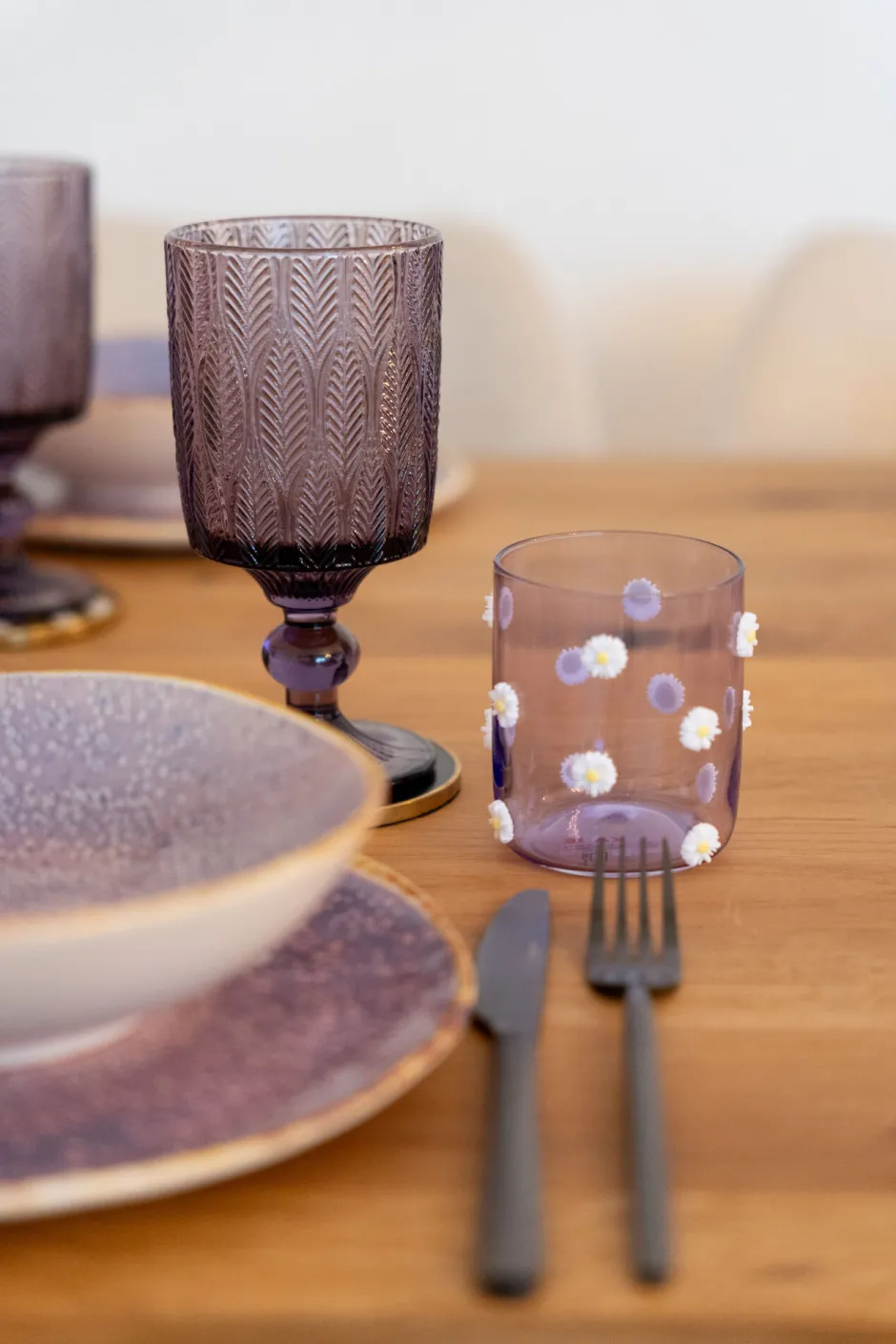 - Das Glas fasziniert durch die klassische Form und seine leicht transparente Färbung in sanftem Lila