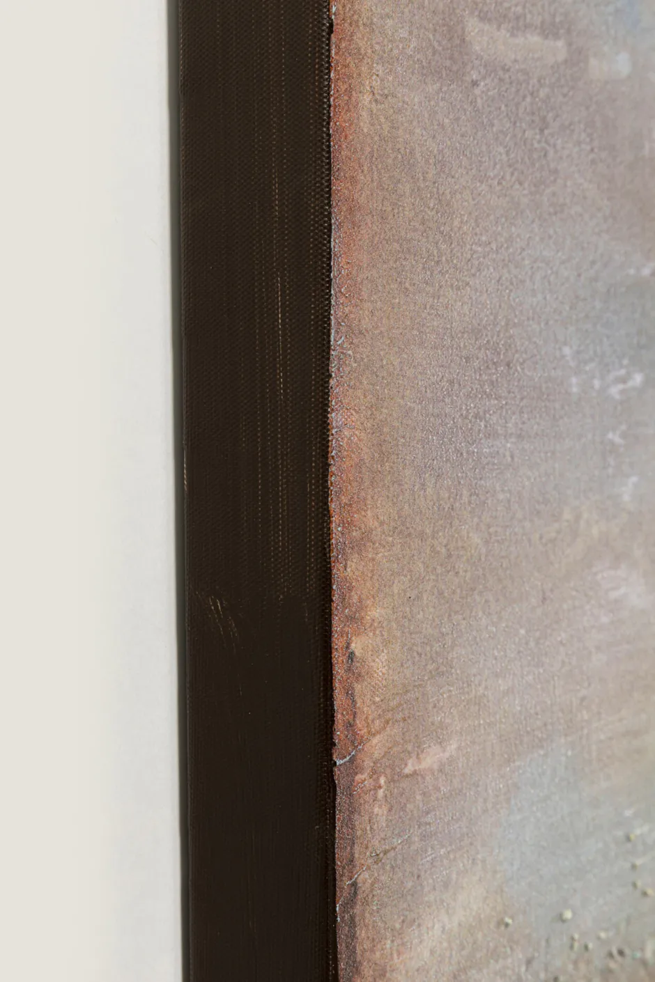 - Das Bildmotiv spielt mit gedämpften, natürlichen Farben in Graublau und Erdtönen
