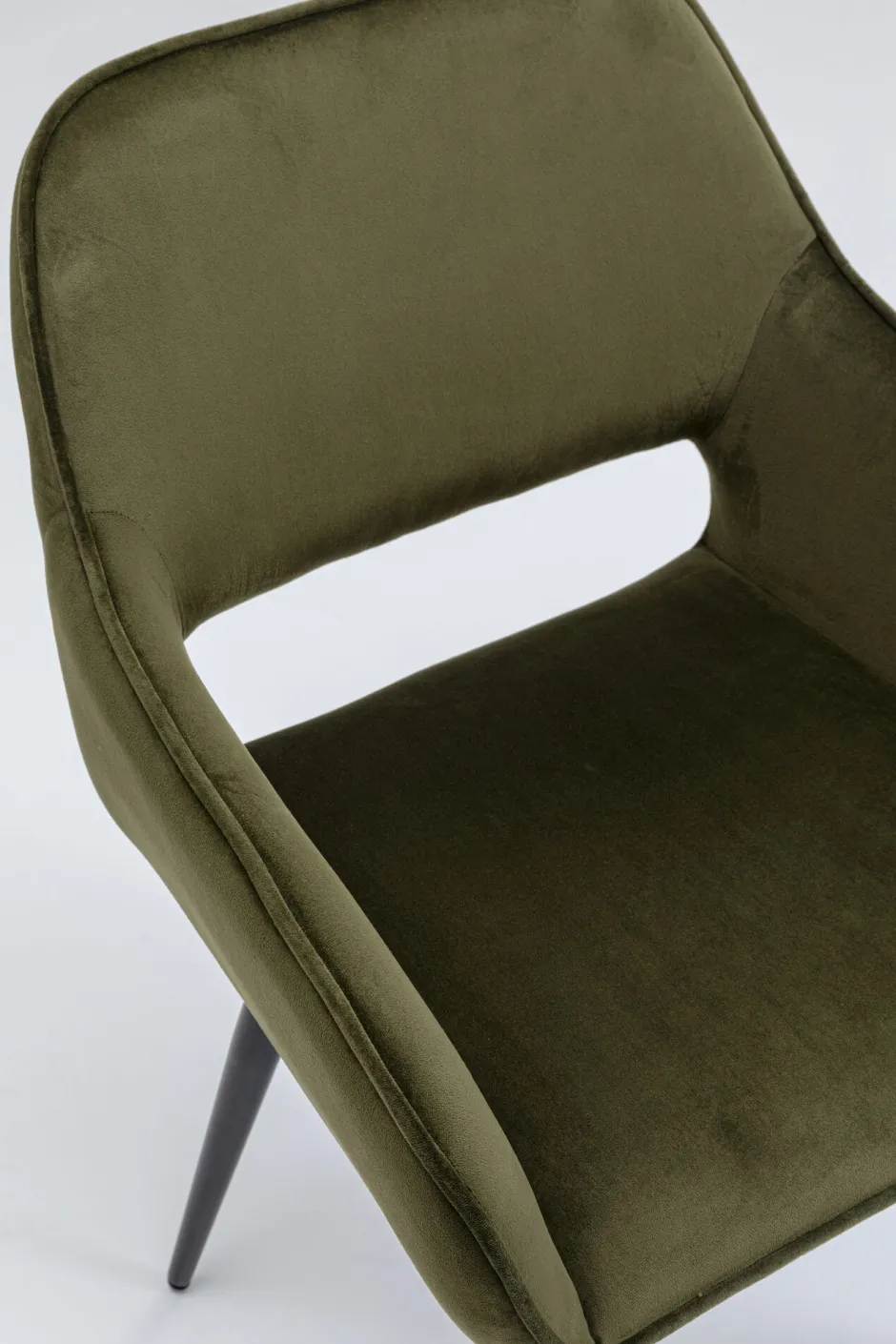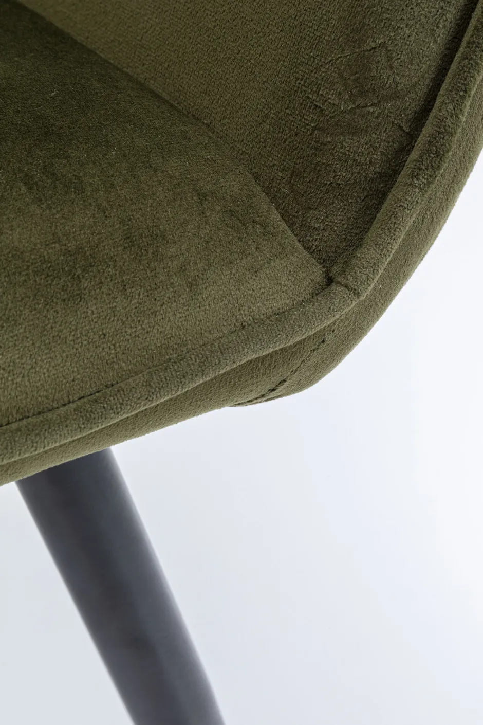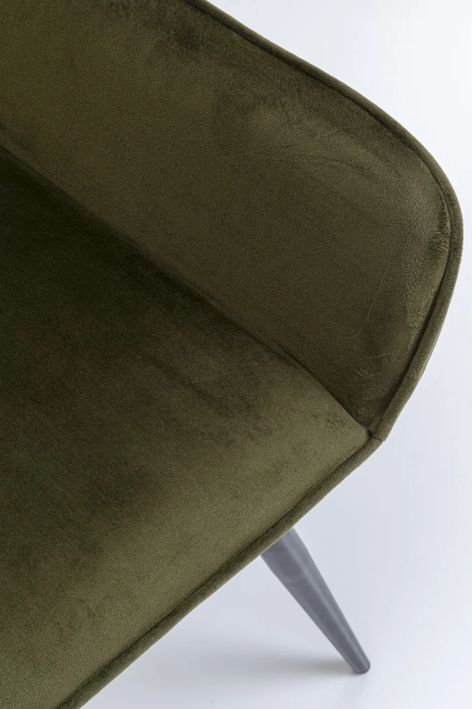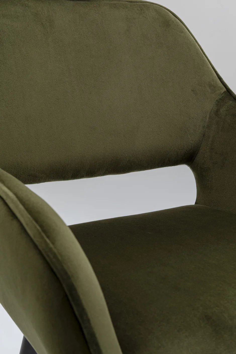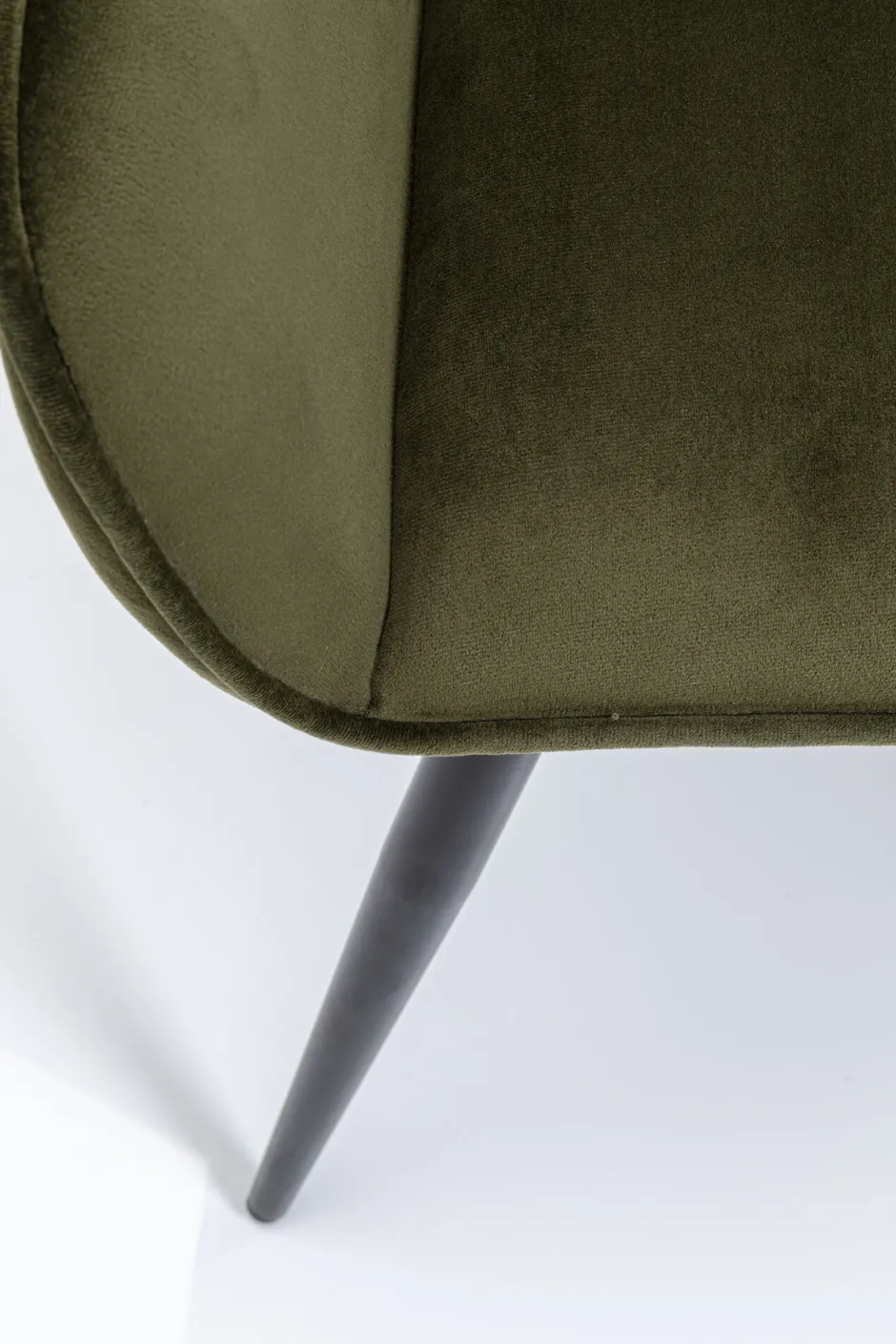 - Grüner Armlehnstuhl in Samtoptik mit eleganter Kedernaht, schnittiger Form und stabilen, schwarzen Beinen aus Stahl