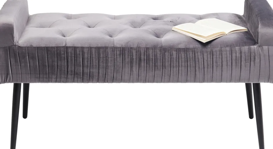 - Die stylische Samt-Polsterbank in Grau macht sich gut im Flur, im Ankleidebereich oder vor dem Bett im Gästezimmer
