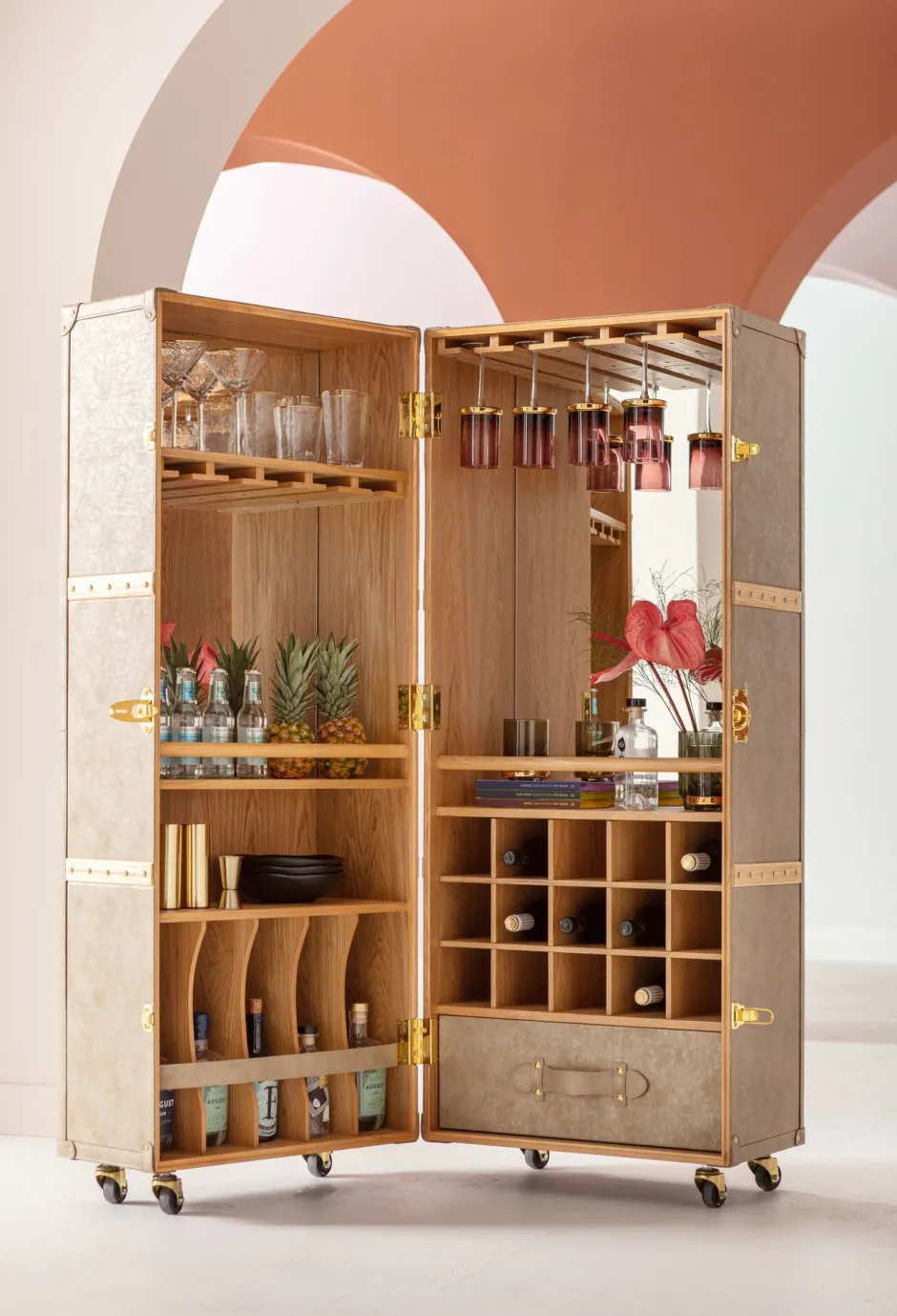 - Gut gegliedertes Innenleben – der Barwagen bietet reichlich Stauraum für Barutensilien wie Gläser und Flaschen