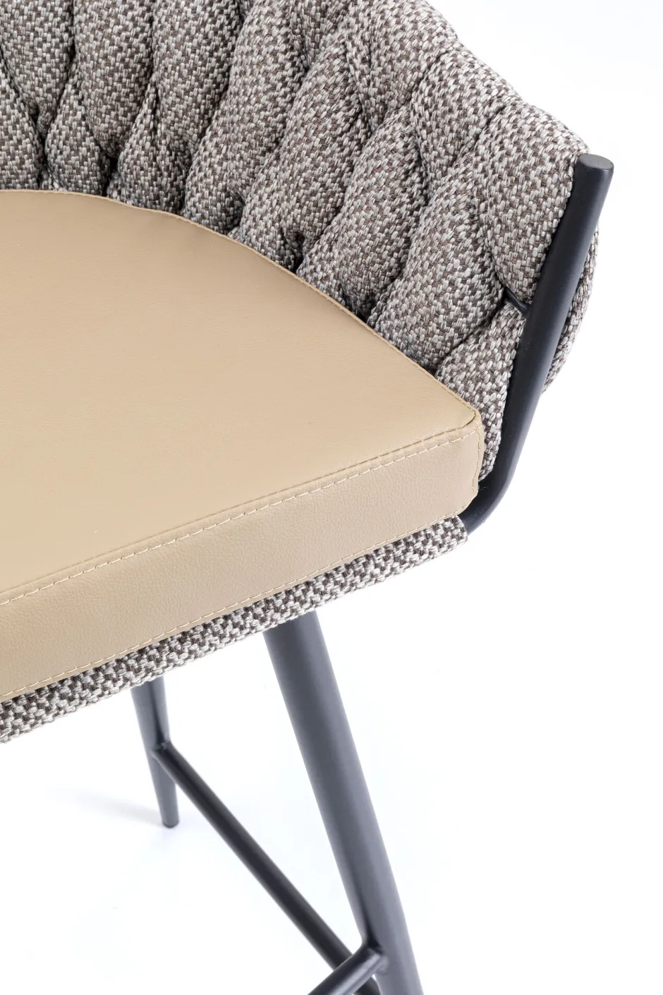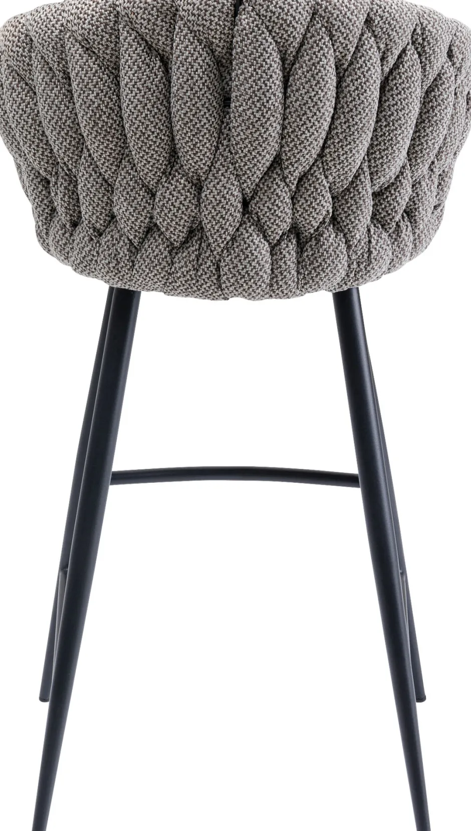 - Bequemer Barstuhl in natürlichen Farben und Tweed-Optik mit durchgehender Rückenlehne in raffinierter Flechtoptik