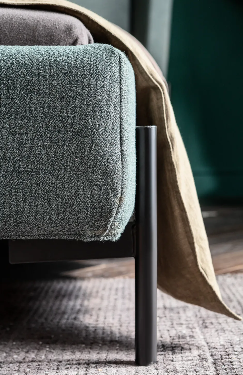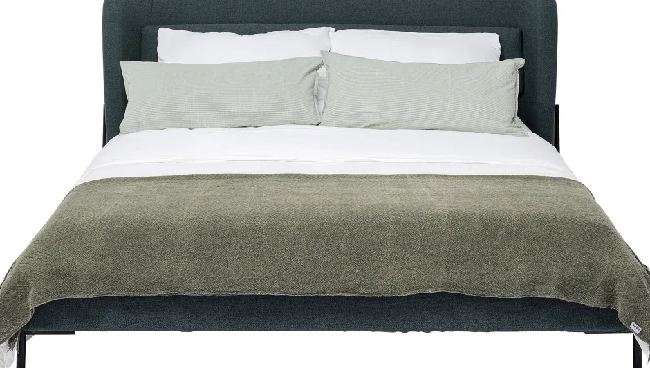 - Polsterbett 180 x 200 cm in der Trendfarbe Grün mit schwarzen Beinen