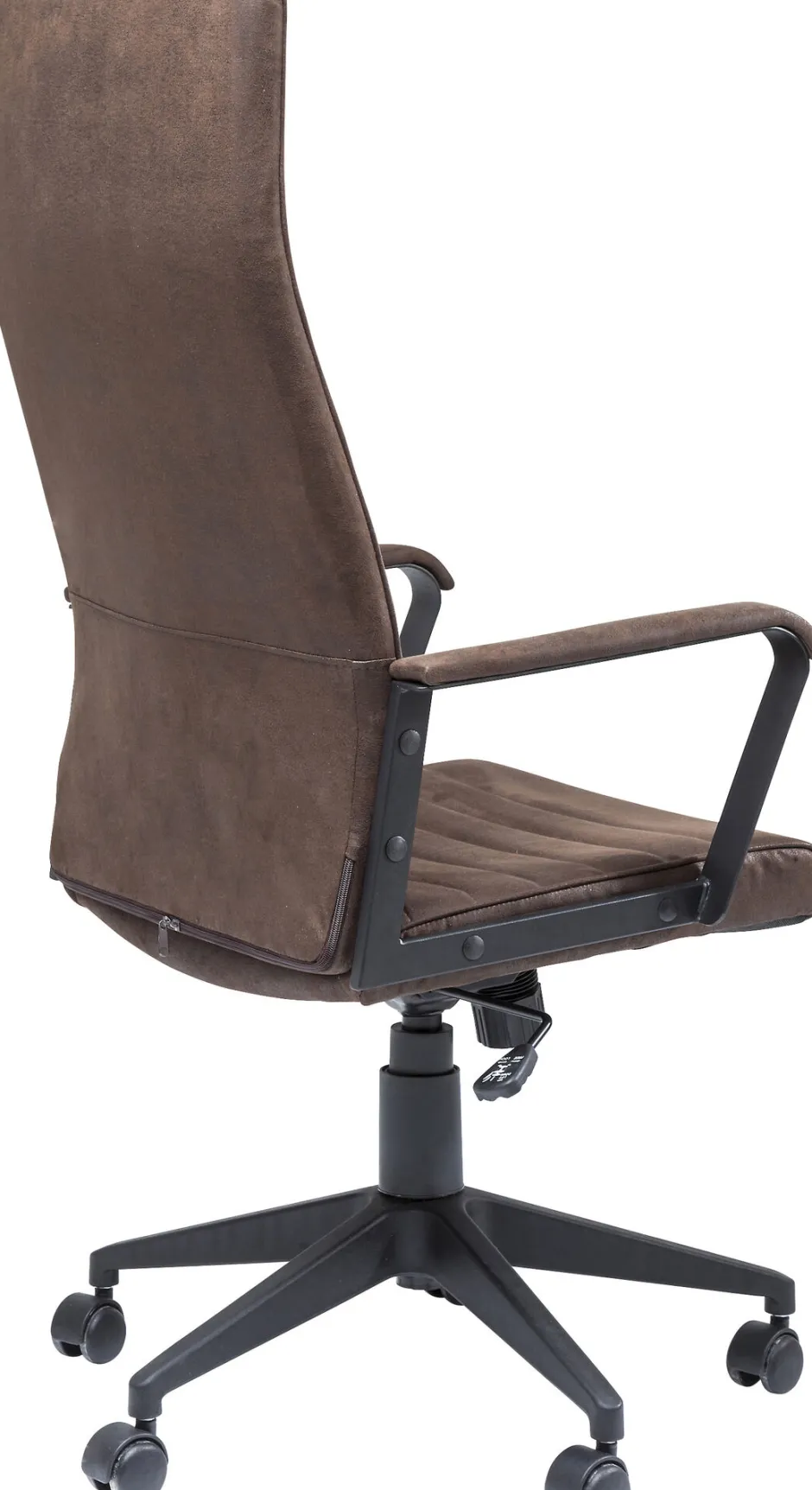 - Der Drehstuhl in Braun ist stufenlos per Gasdruckfeder höhenverstellbar, 360 Grad drehbar und verfügt über eine individuell einstellbare Wippfunktion