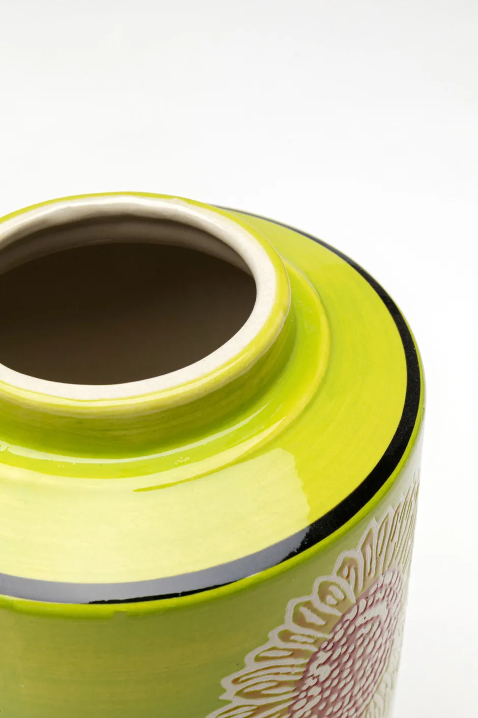 - In einem erfrischenden Limettengrün mit zarten Blumen-Motiven in Weiß und Rosa setzt diese Dose stilvolle Akzente