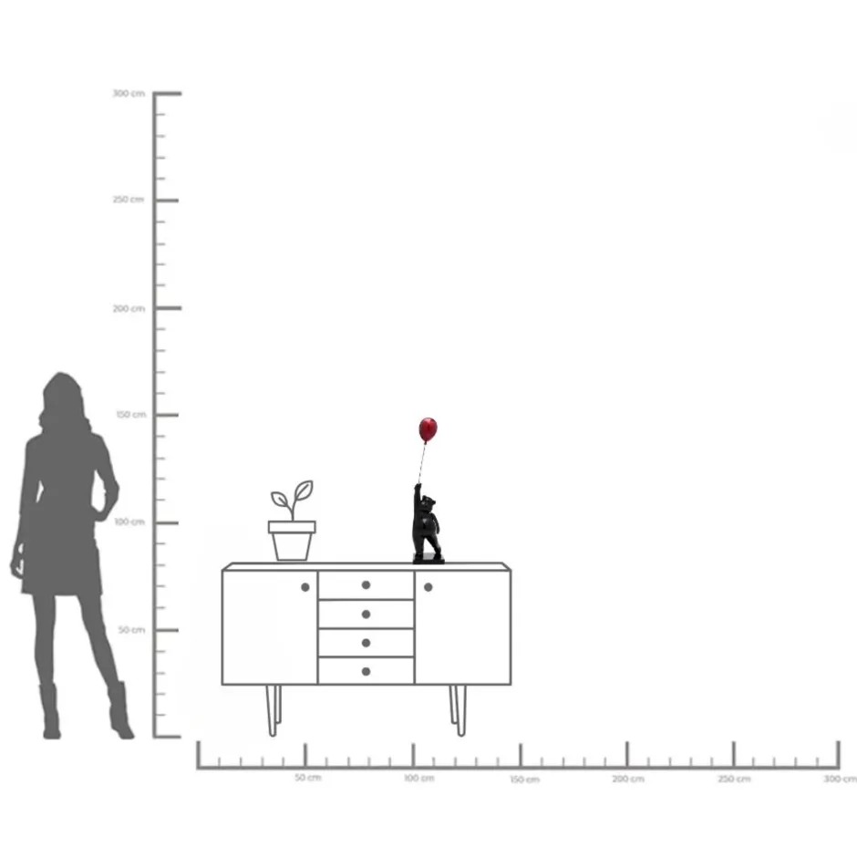 - Diese charmante Dekofigur zeigt einen niedlichen Bären, der mit einem roten Ballon in der Hand pure Freude ausstrahlt