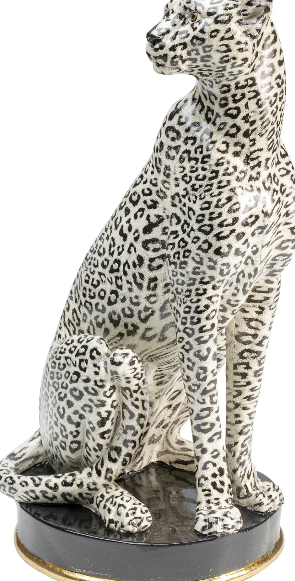 - Eindrucksvolle Deko-Skulptur mit sitzendem Gepard auf glamourösem Sockel