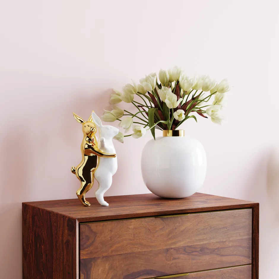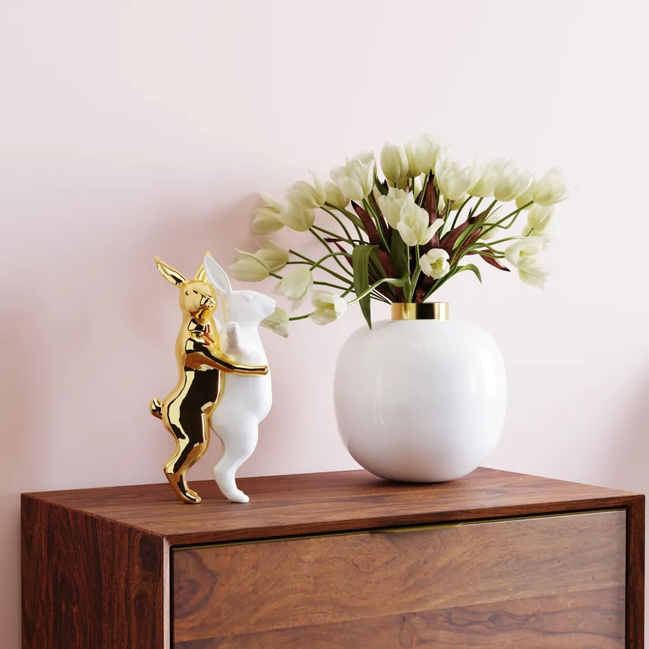 - Dekofigur Hasen in Weiß und Gold, 24.5 x 14.7 x 11.5 Zentimeter (H/B/T)