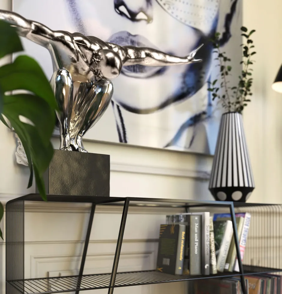 - Steht als Deko-Skulptur auch überall dort gut, wo es um Sport, Fitness und Gesundheit geht