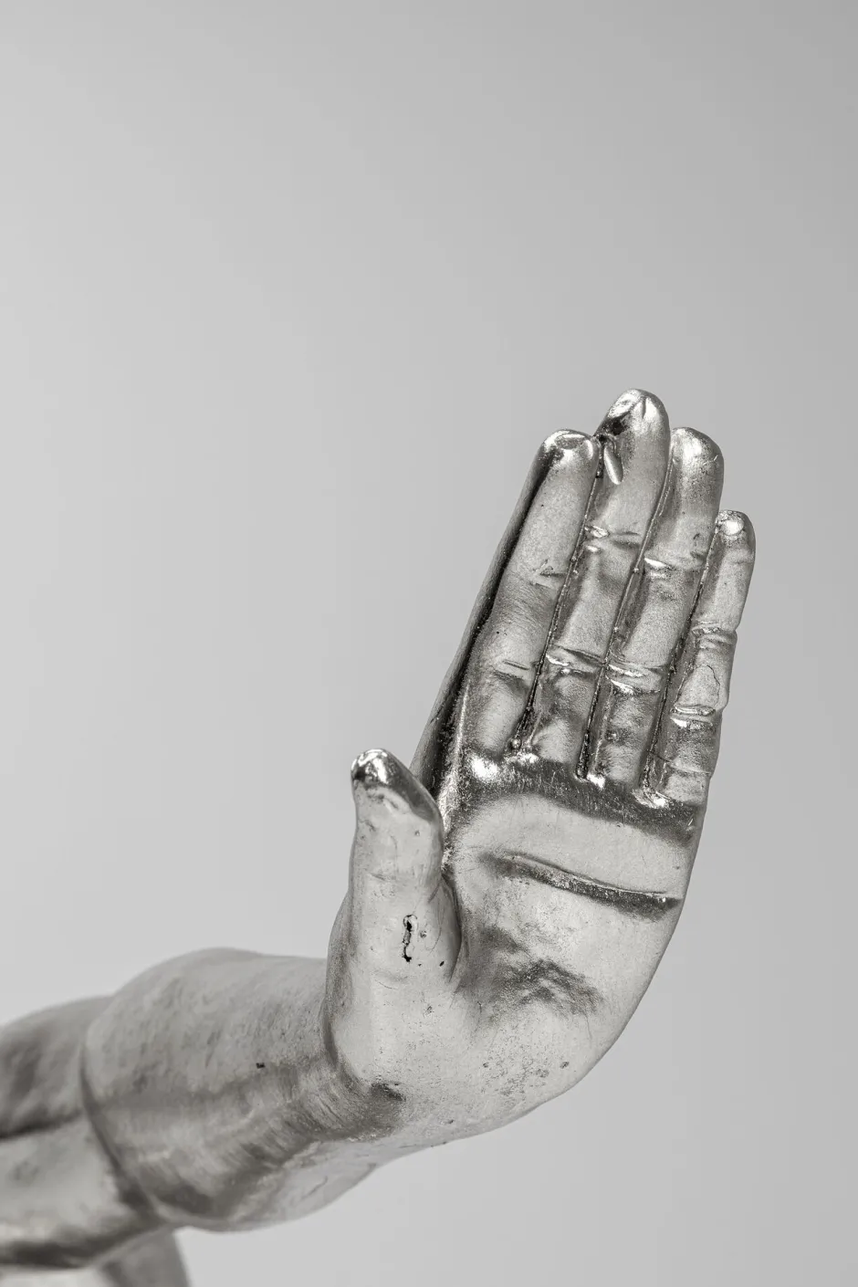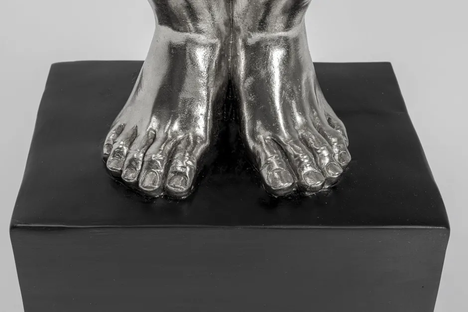 - Silberfarben glänzende Deko-Figur eines Muskelpakets auf schwarzem Marmorsockel
