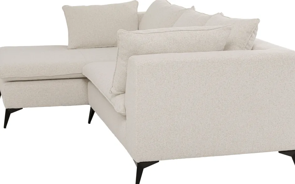 - Fünf weiche Kissen laden zum Verweilen ein und die filigranen Füße in Schwarz setzen einen modernen Akzent