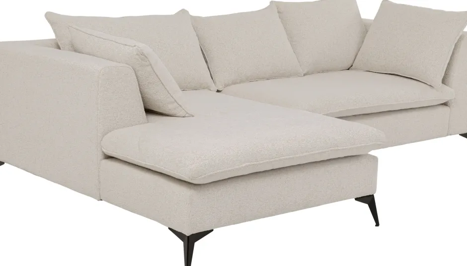 - Die Couch lässt sich dank der sanften Formen und dem melierten Bezug in hellen, zarten Creme-Tönen vielfältig kombinieren