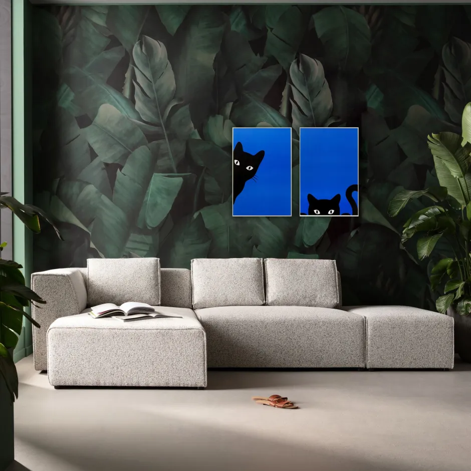 - 2er Set Katzen-Bilder in Blau und Schwarz, 60 x 40 x 3 Zentimeter (H/B/T) je Bild