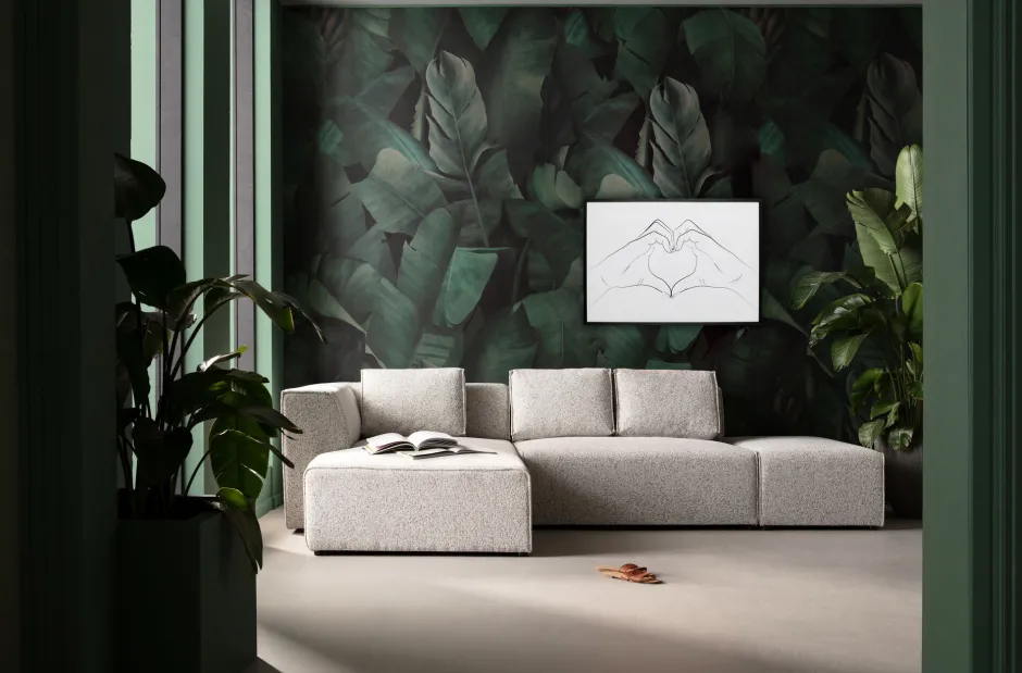 - Das Motiv der beiden Hände in Herz-Form begeistert durch zarte Linienführung