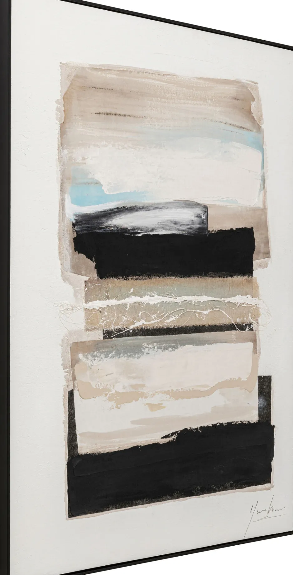 - Gerahmtes Bild mit abstraktem Motiv in Beige und Schwarz, 90 x 120 x 5 Zentimeter (H/B/T)