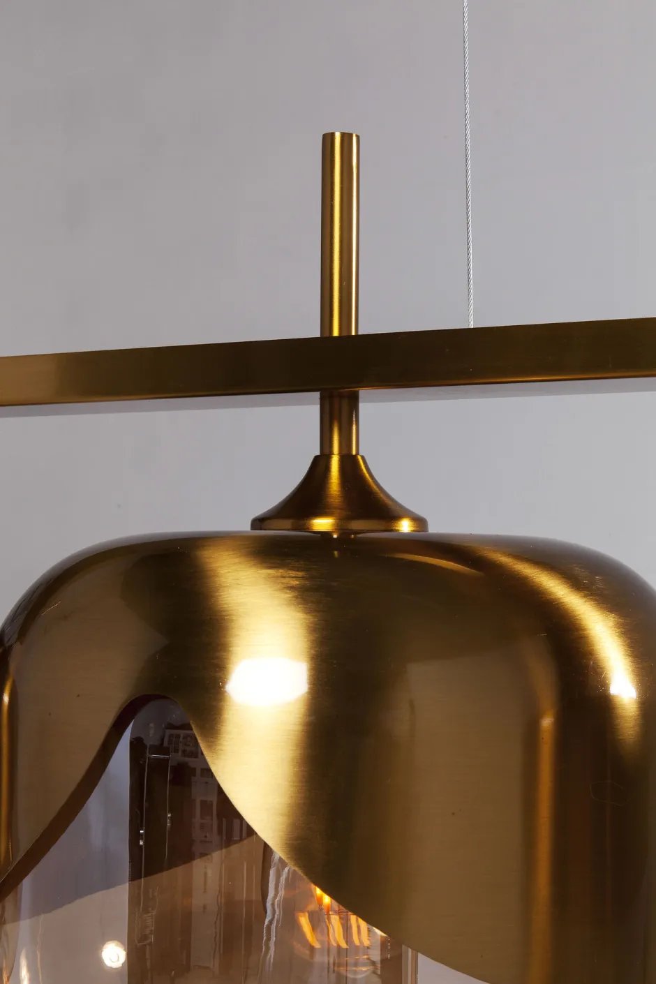 - Glamouröse Hängeleuchte mit klaren Linien, trendigen Details und Retro-Vibes, die sofort Wärme in den Raum bringt