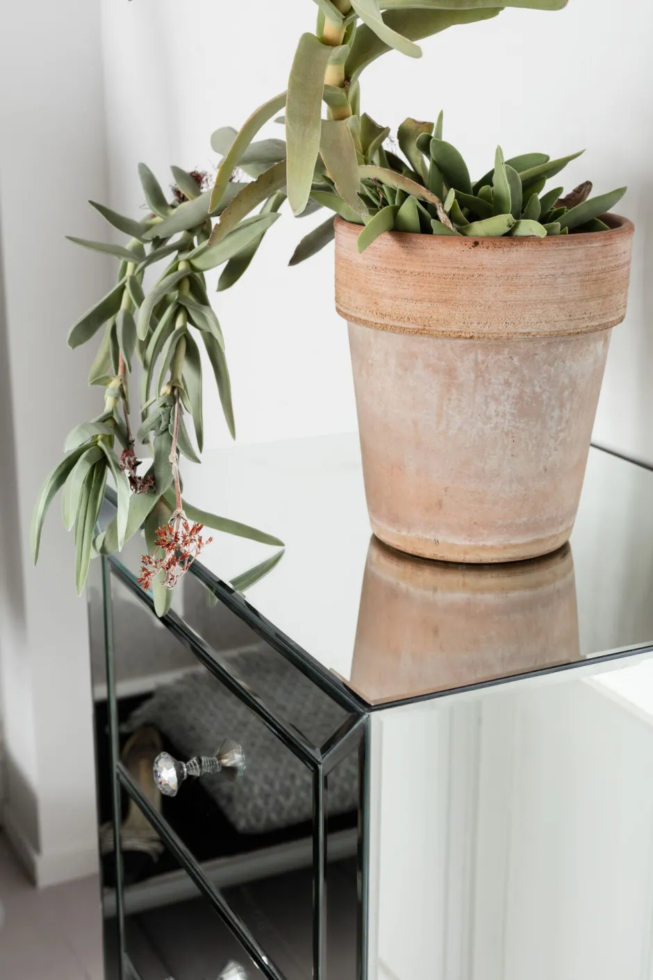 - Verspiegelte Hochkommode, die durch ihre praktischen Maße und ihren Glam-Faktor punktet