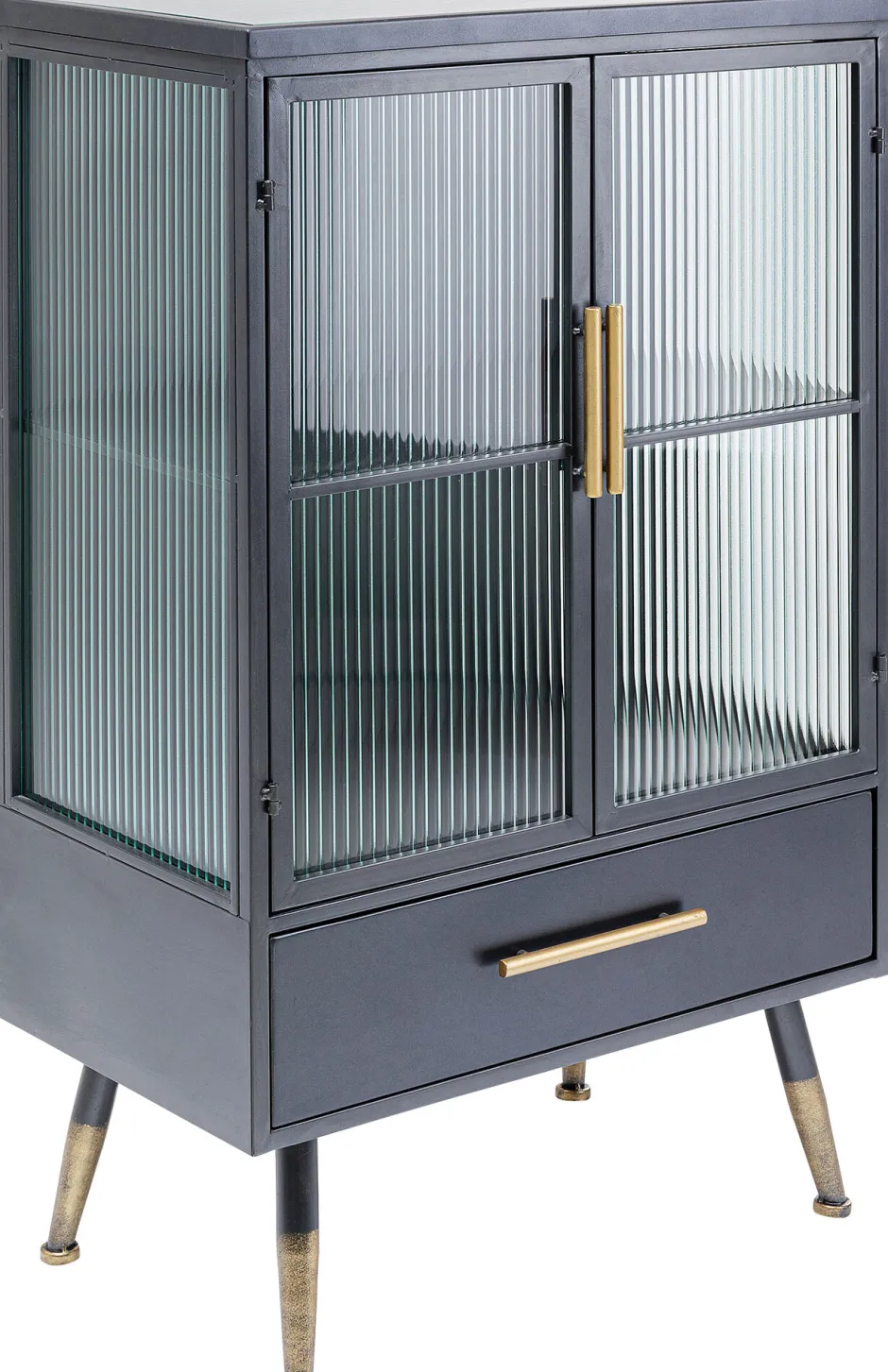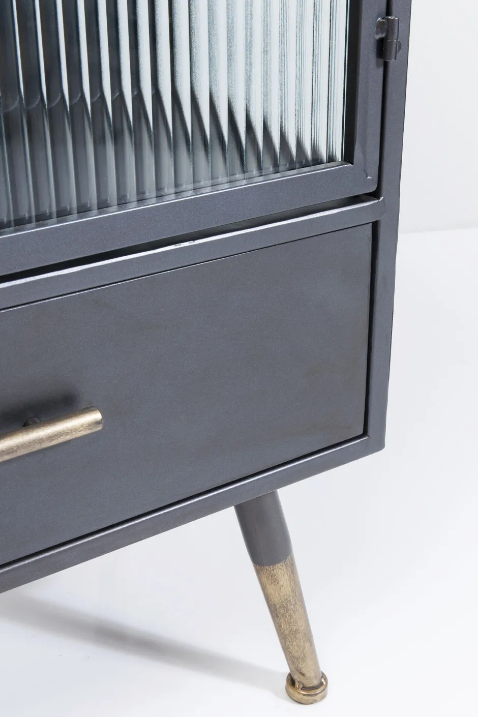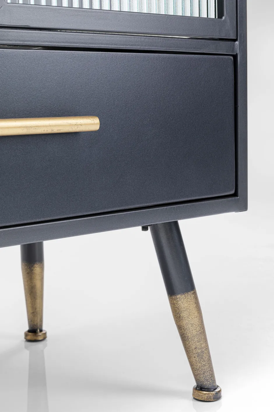 - Schmückendes Detail: die messingfarbenen Griffe und Füße, die dem Industrie-Design eine edle Note verleihen