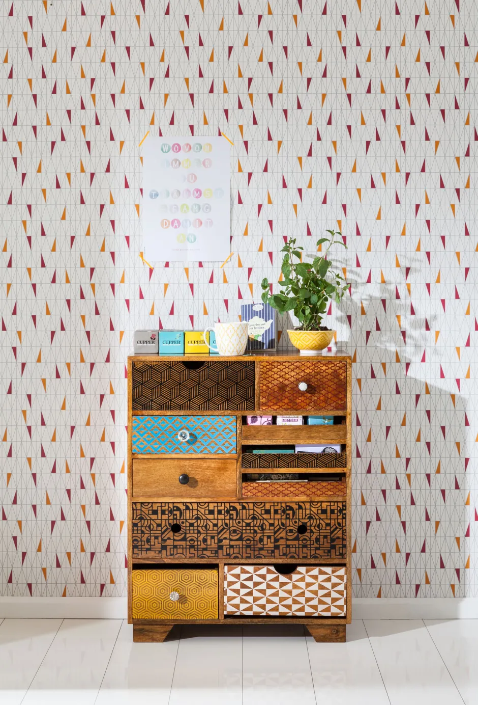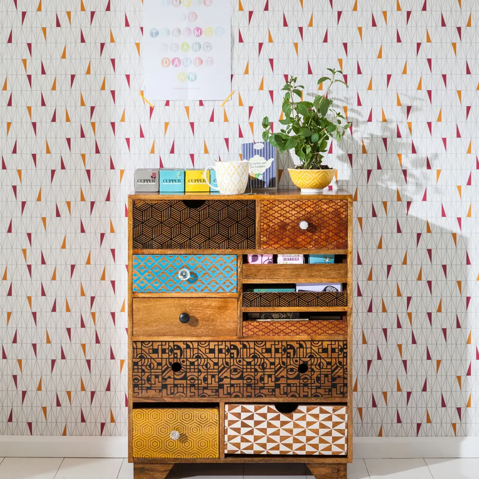 - Kommode mit zehn Schubladen und bunten, grafischen Fronten
