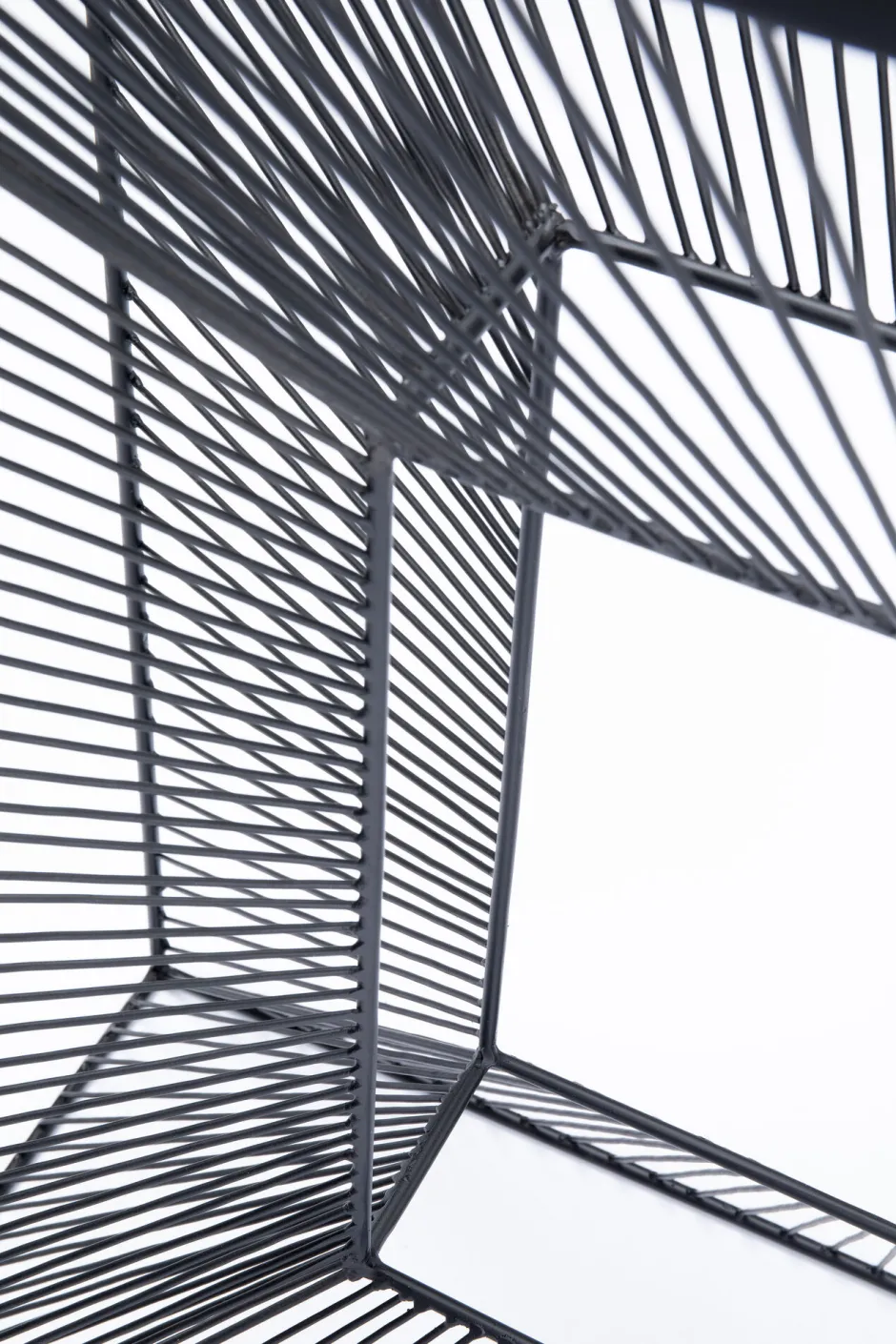 - Konsole mit Glasplatte, die durch ihr grafisches Stahldraht-Gestell wie ein modernes Kunstobjekt wirkt