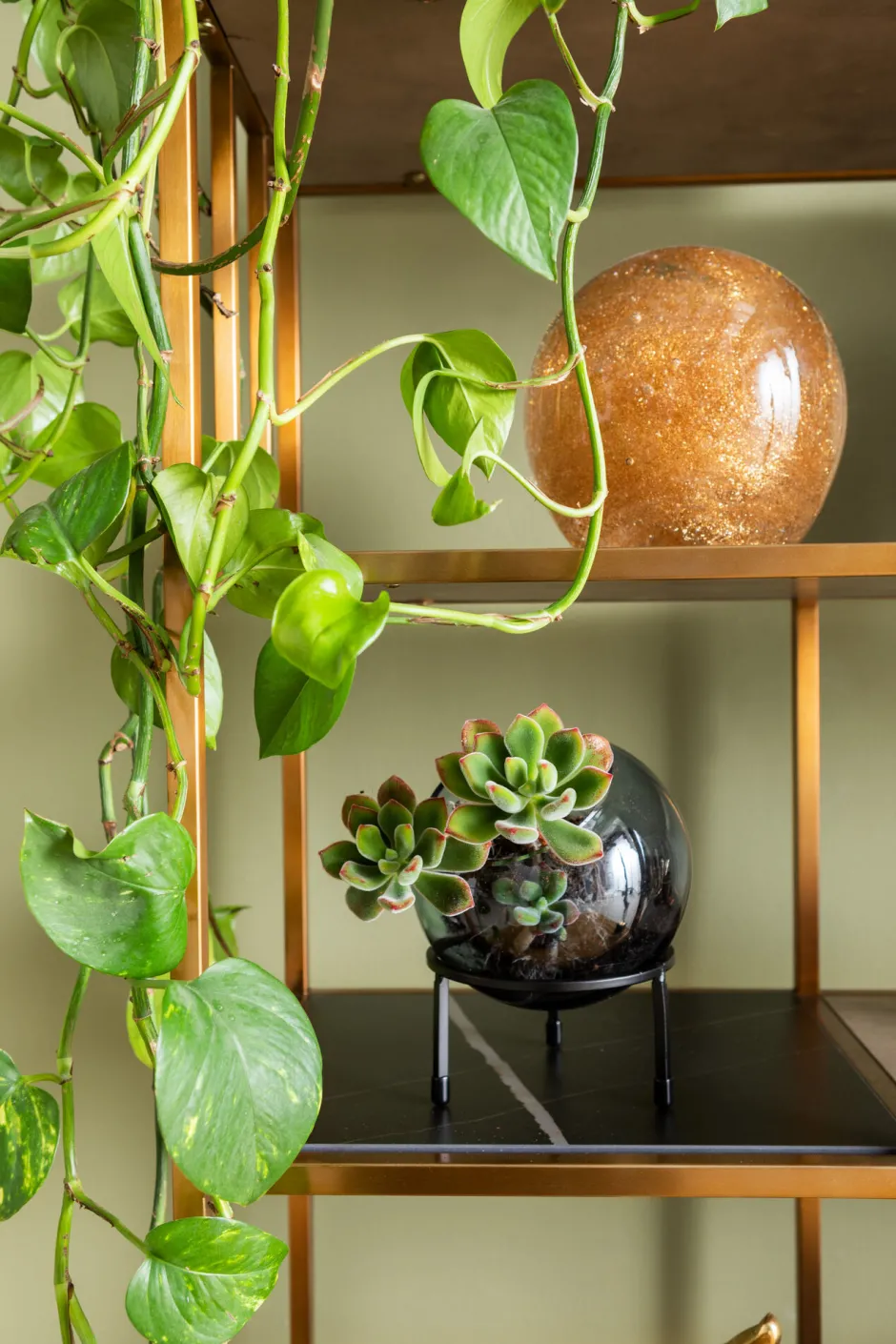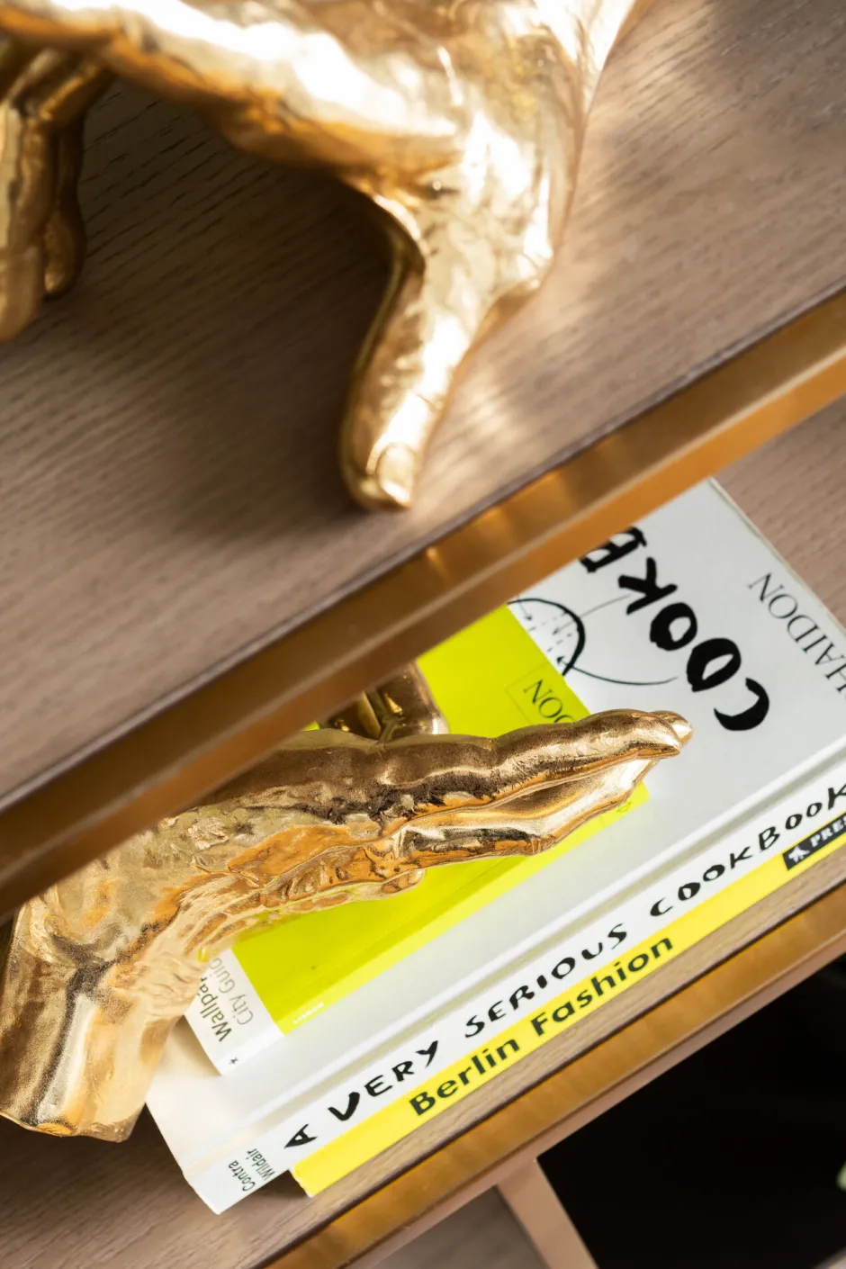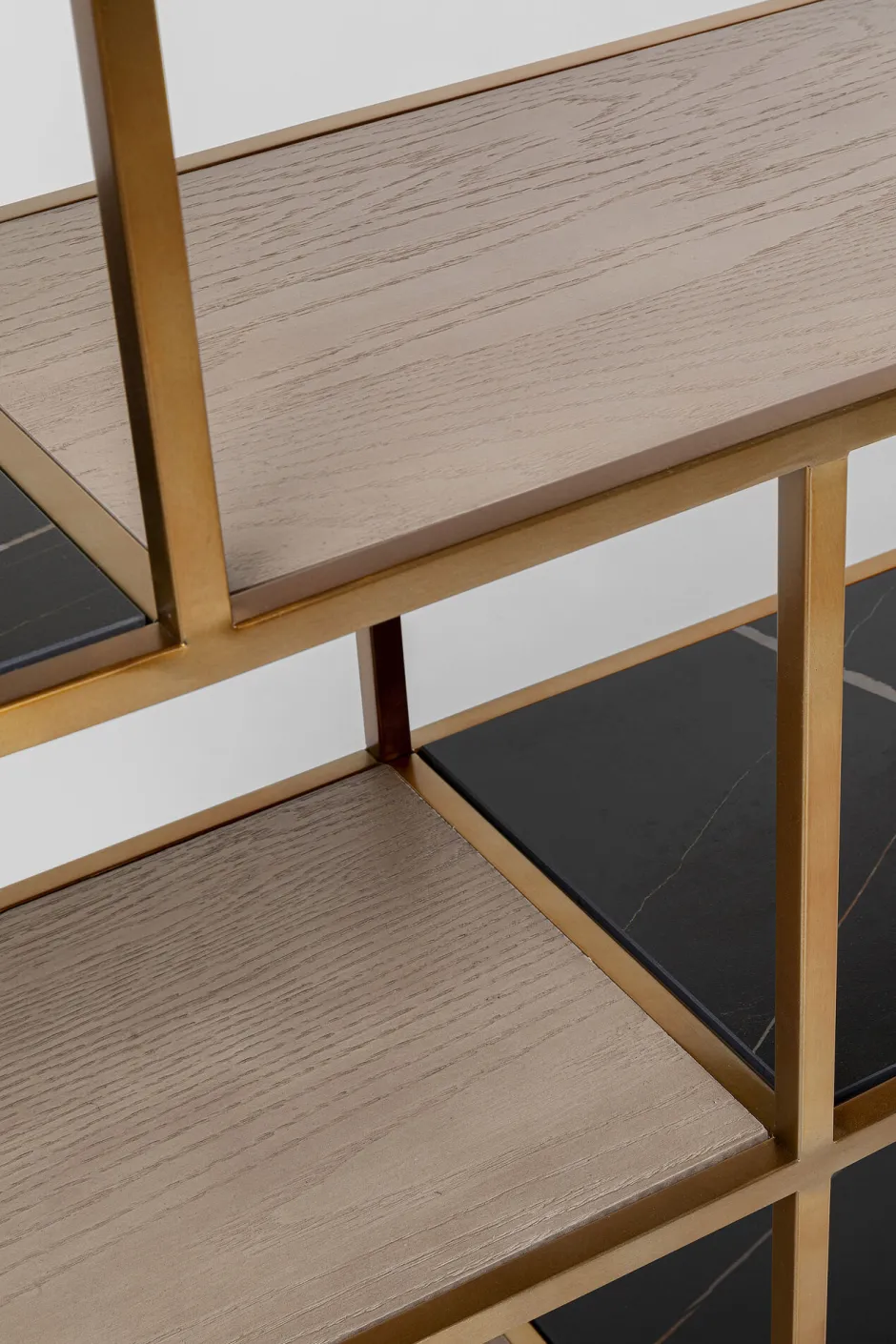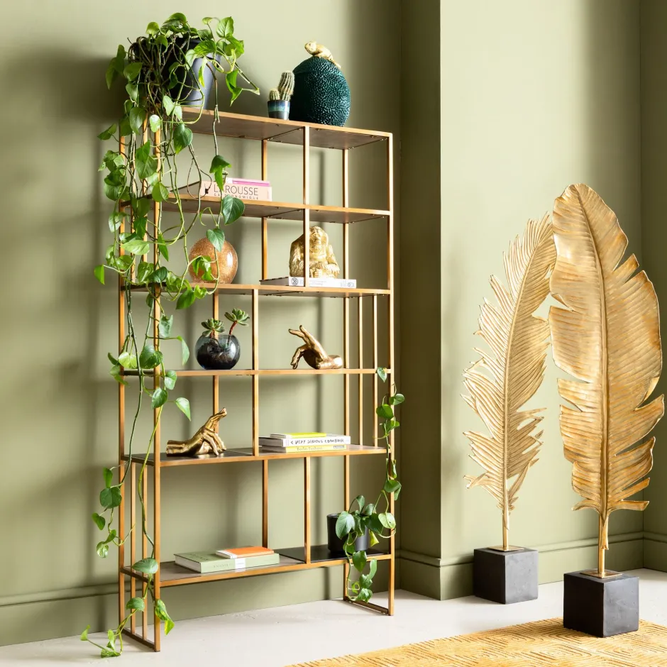- Eine Beschichtung aus purem Messing verleiht dem Bücherregal seine moderne Eleganz und die warme Ausstrahlung
