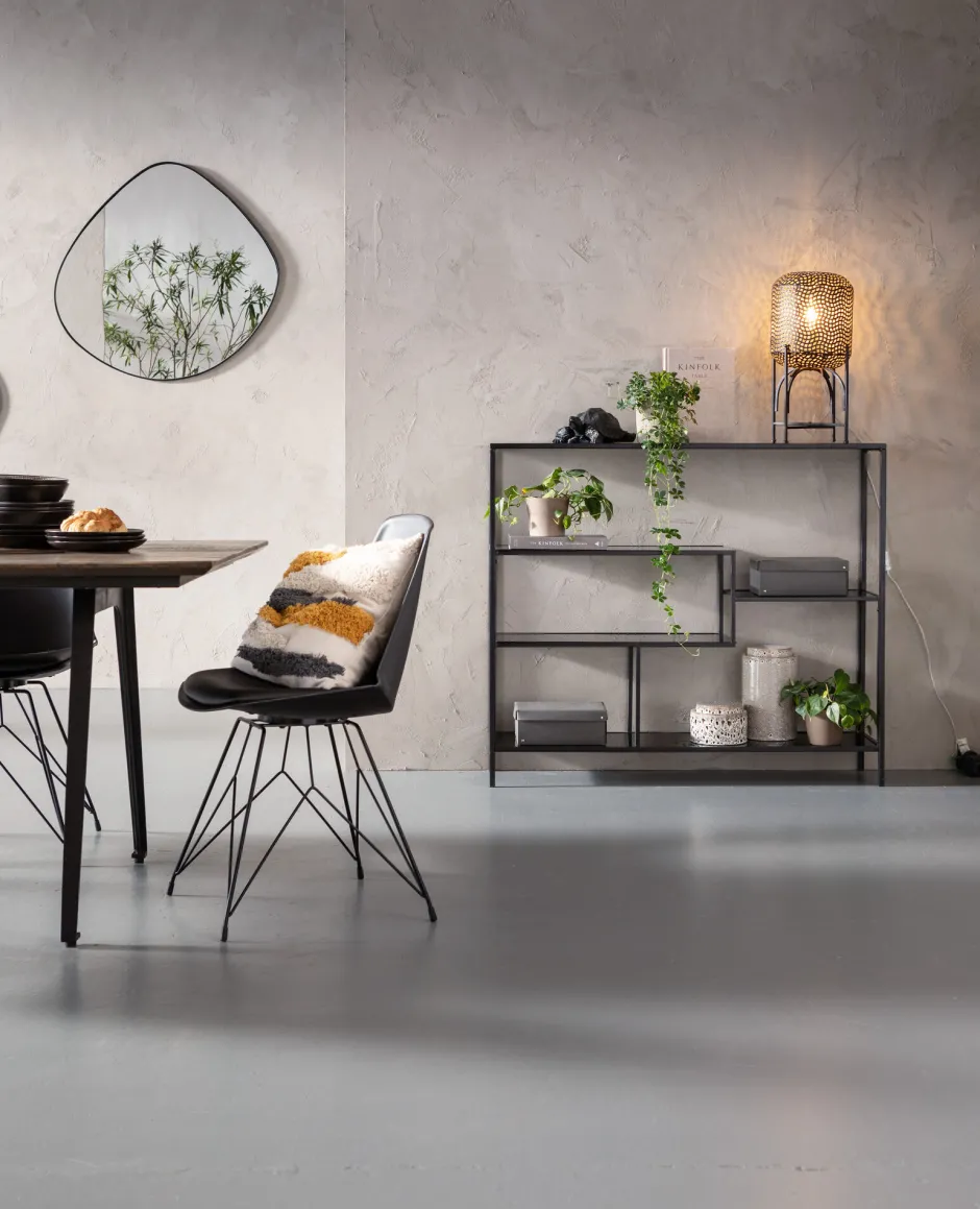 - Dank interessant angeordneter Fächer und dem coolen Materialmix aus Stahl und Glas ein Basic für die Ewigkeit