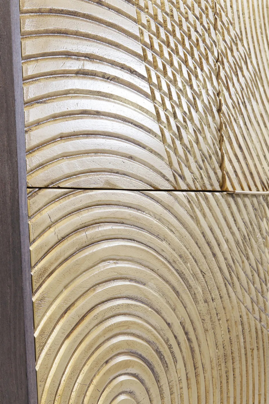 - Mit einem kunstvollen Kreismuster auf der Front aus massivem Holz