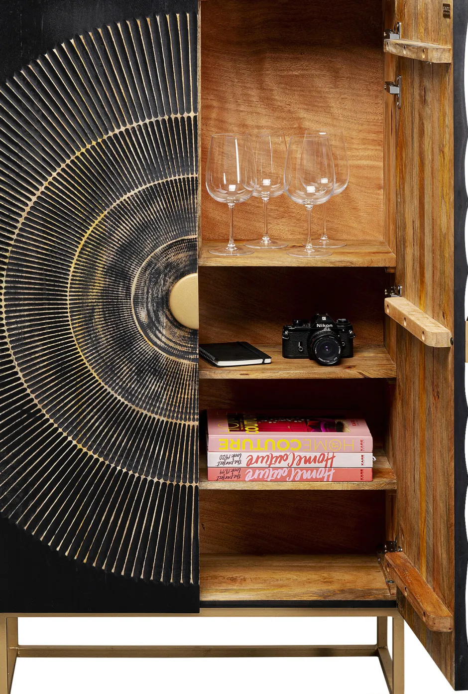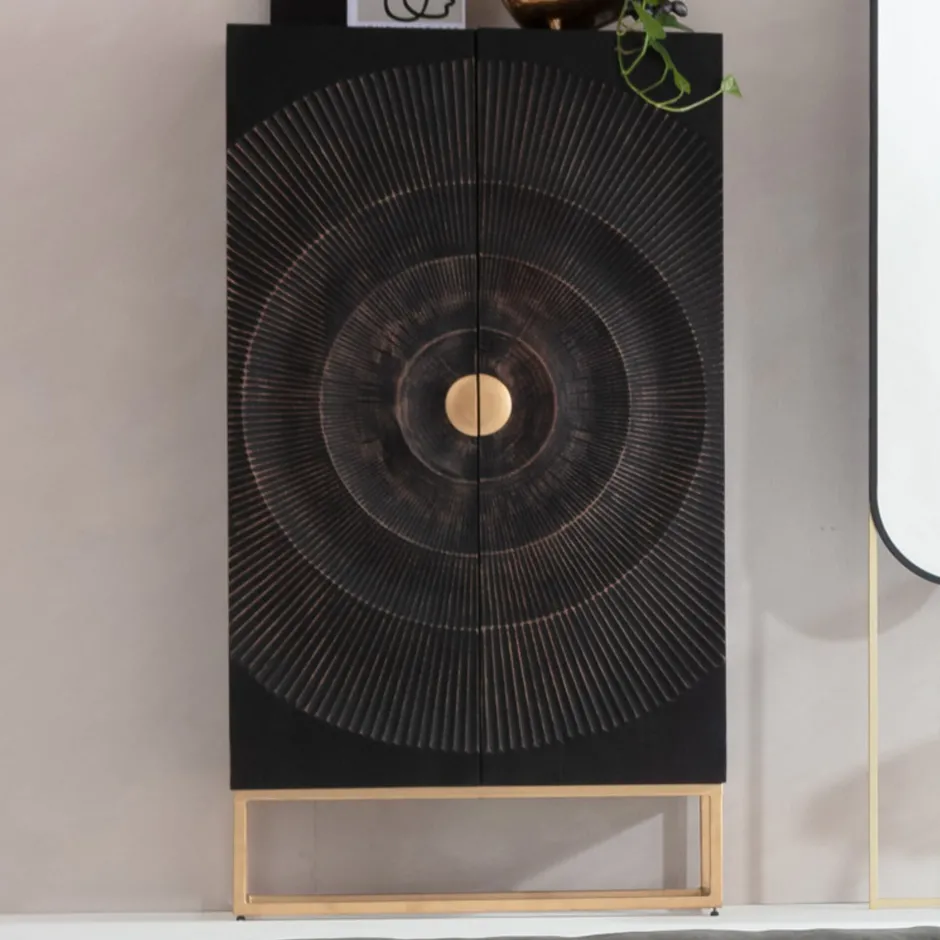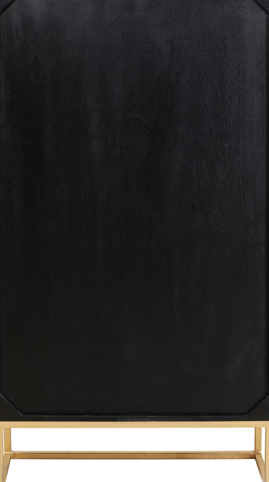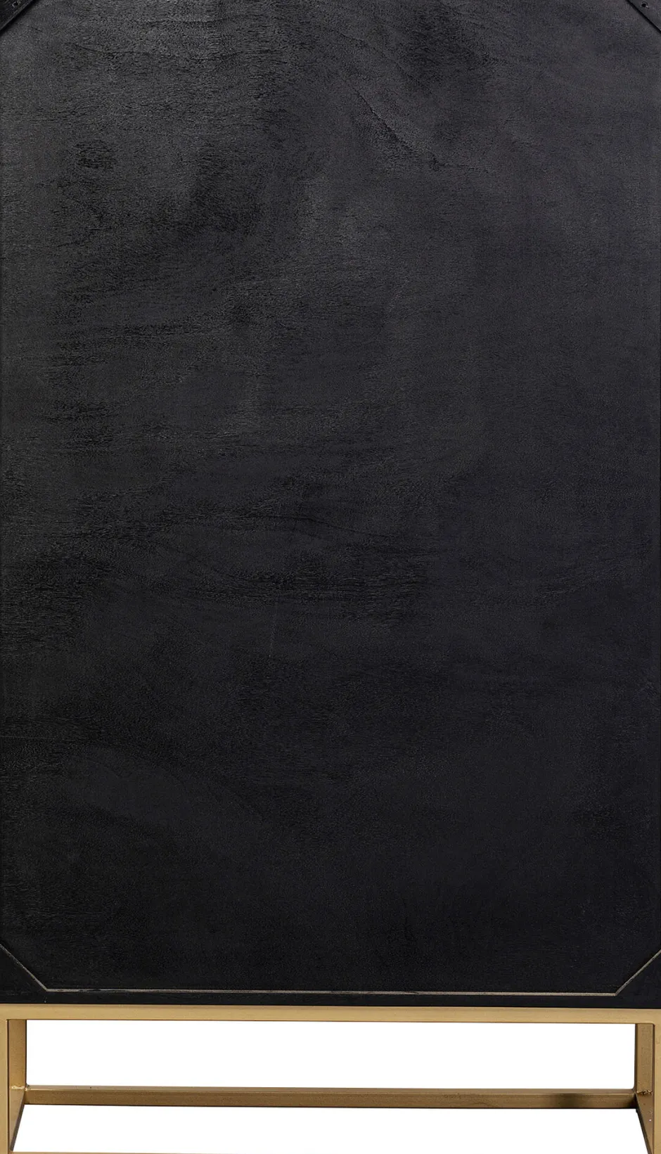 - Schmaler Schrank in Schwarz-Braun aus massivem Holz mit goldenem Gestell