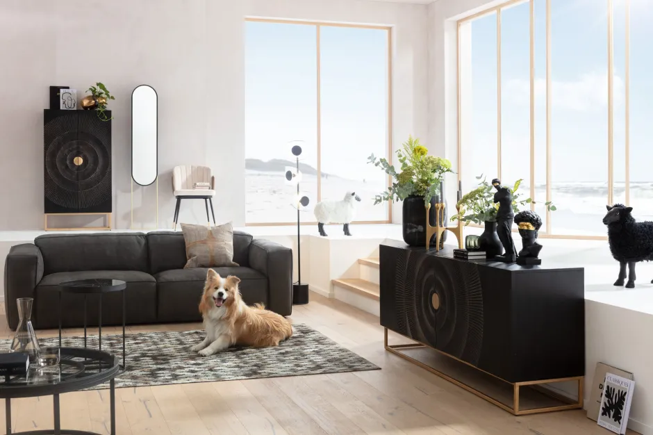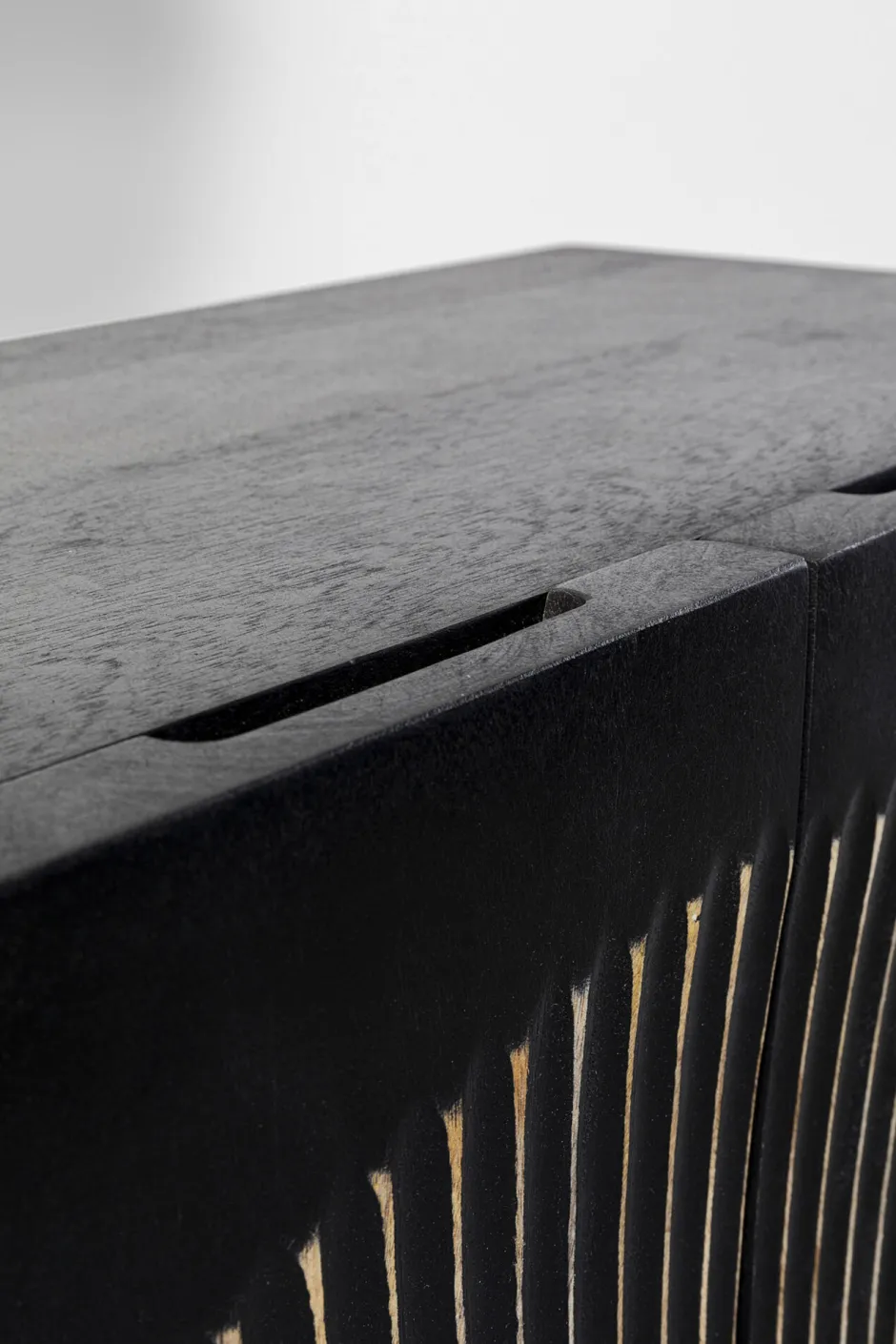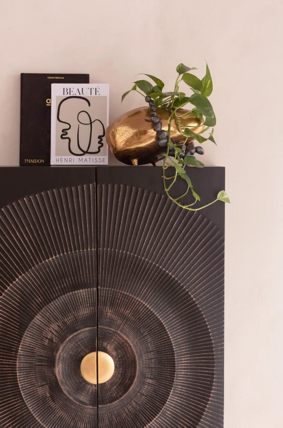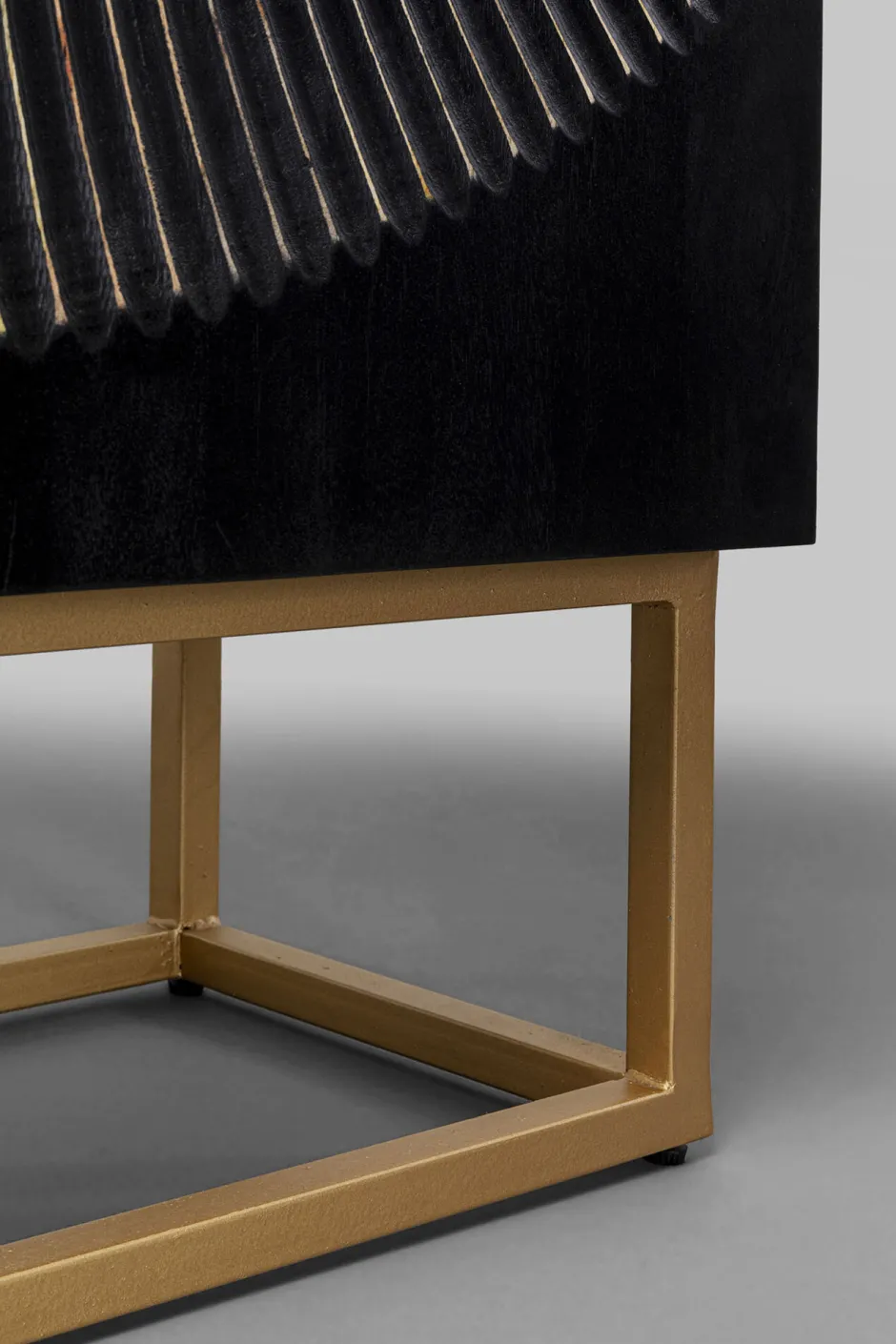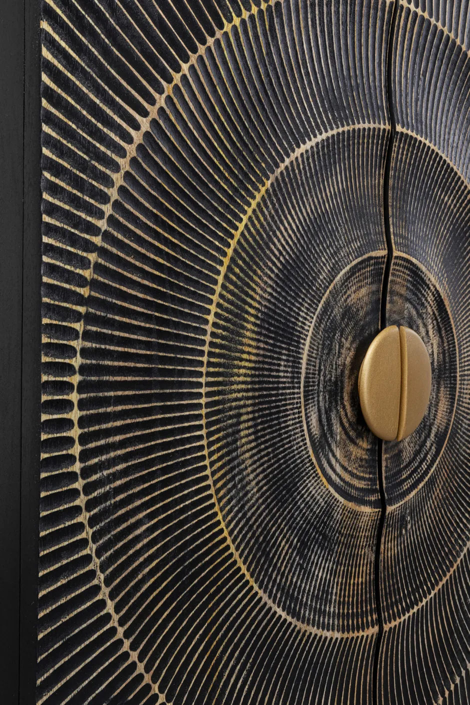 - Schmaler Schrank in Schwarz-Braun aus massivem Holz mit goldenem Gestell