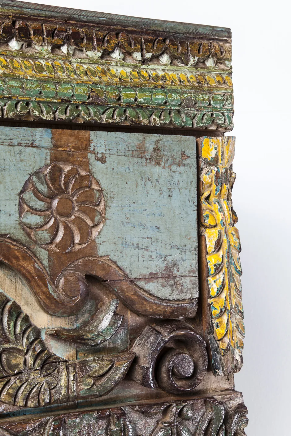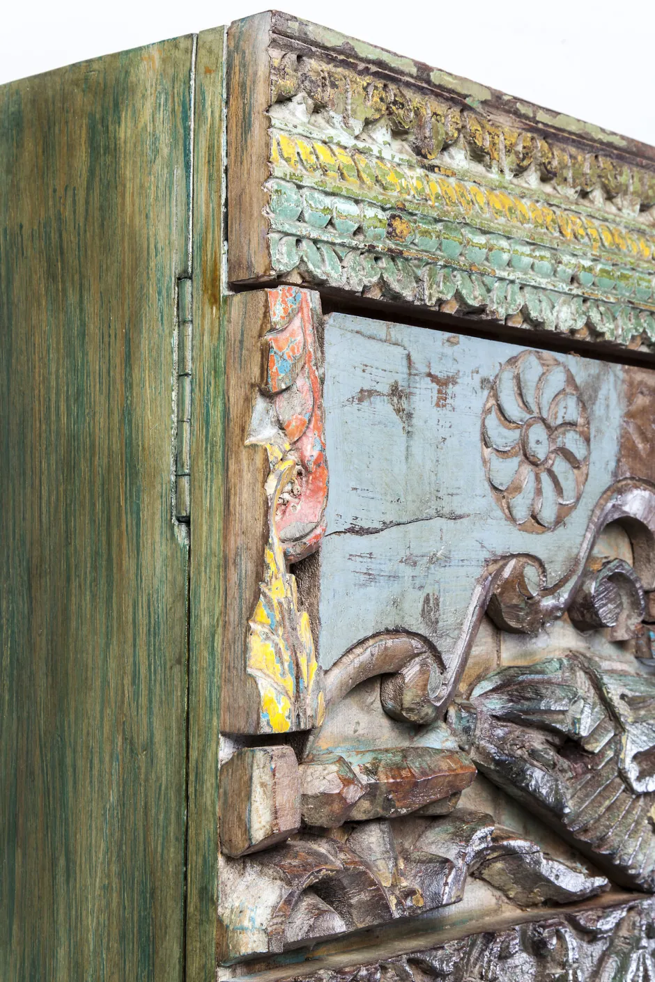 Es sind die Details, die Dinge zum Leben erwecken. Wie eine reich verzierte Wand aus phantasievoll geschnitzten Motiven und Ornamenten – so präsentiert sich dieser prachtvolle und mystisch anmutende Schrank aus der KARE Serie Shanti. Mit viel Fantasie erzählt dieser Schrank märchenhafte Geschichten, die von verborgenen Schätzen, Prophezeiungen und einer Romantik handeln, die in all ihrer Schönheit dargestellt wird. Diesen Rätseln auf der Spur lassen sich bemerkenswerte Details entdecken, wie Ornamente und florale Motive. Damit überrascht und fasziniert Shanti Surprise immer wieder und vermittelt Lebensfreude. Die Serie Shanti erzählt die Geschichte der hunderte Jahre alten Handwerkskunst des Schnitzens in Indien. Unser Design-Team hat direkt vor Ort in der Werkstatt die Idee entwickelt, wie aus Puzzle-Stücken Möbelfronten zu schaffen. Wir haben bewusst mit den rauen, ursprünglichen Formen gearbeitet, damit die Geschichte einer Handwerkskunst unverfälscht ins Heute getragen wird und der Charme und die einmalige Aura erhalten bleiben. Auch als Kommode erhältlich. Pflege: Bücherregal: Trocken abstauben. Bei Reliefoberflächen aus Holz eignet sich eine weiche Kleiderbürste, um aus den Rillen Staub zu entfernen. Mit dem weichen Bürstenaufsatz Ihres Staubsaugers gelegentlich vorsichtig absaugen. Einzigartige Handarbeit aus Naturmaterial: Es zeichnet natürliche Materialien aus, dass sie auch nach ihrer Verarbeitung weiter leben, auf Hitze, Feuchtigkeit oder starkes Sonnenlicht reagieren können. Diese Lebensspuren sind gewollt und Bestandteil eines authentischen Möbels.Material: (Mango Massivholz gewachst)