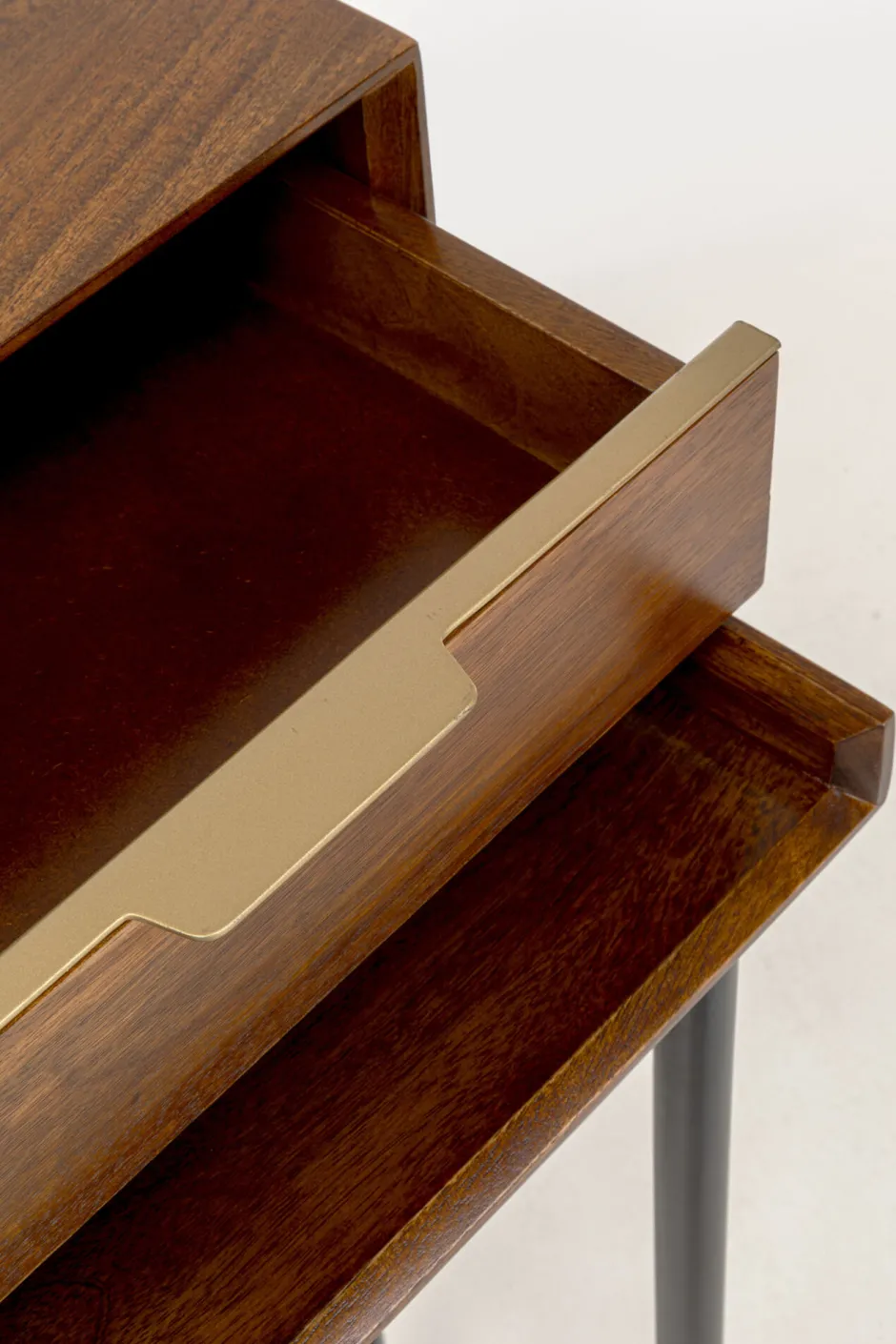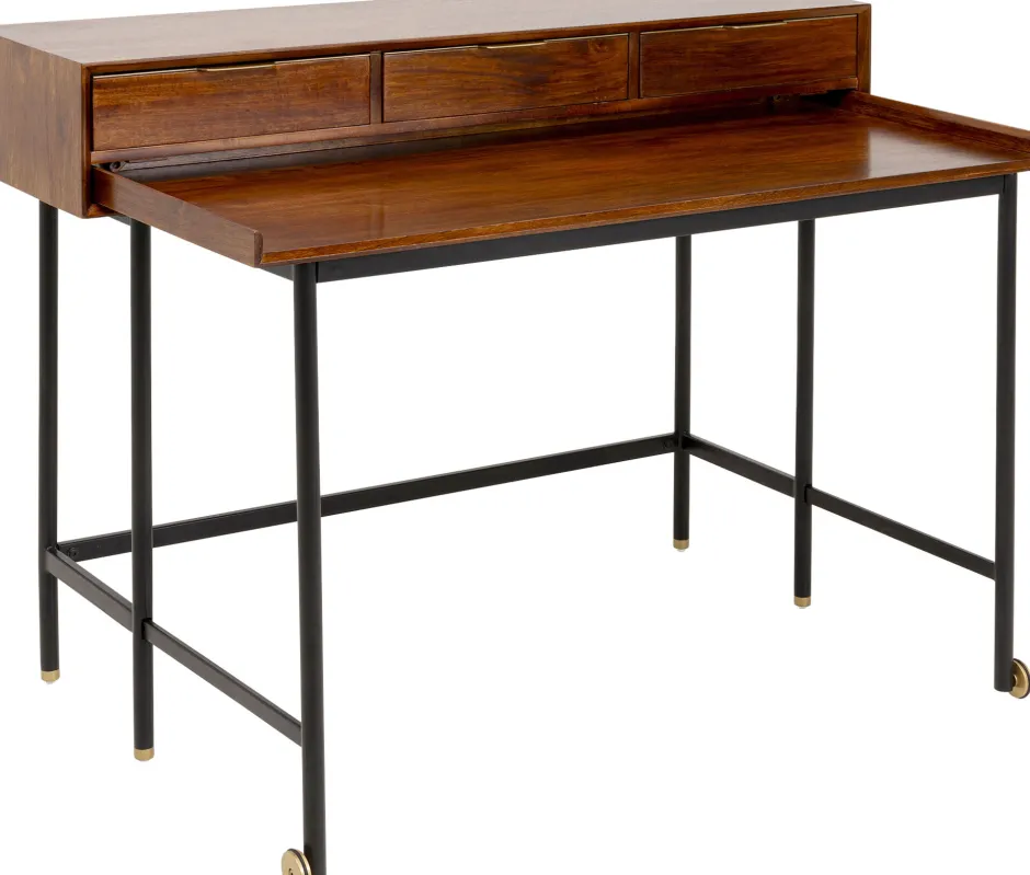 - Wie bei einem Sekretär verfügt der Holztisch über einen Aufsatz mit drei geräumigen Schubladen, die beim Verstauen und Aufräumen helfen