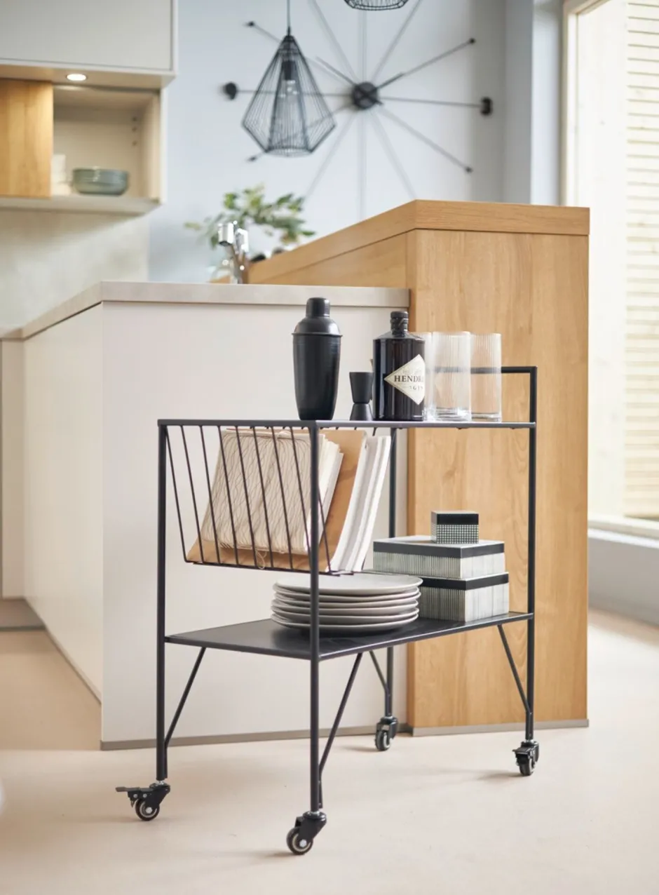 - Im Wohn- oder Esszimmer als rollende Hausbar oder Ergänzung zum Tisch. Im industriestil ein perfektes, mobiles Möbel