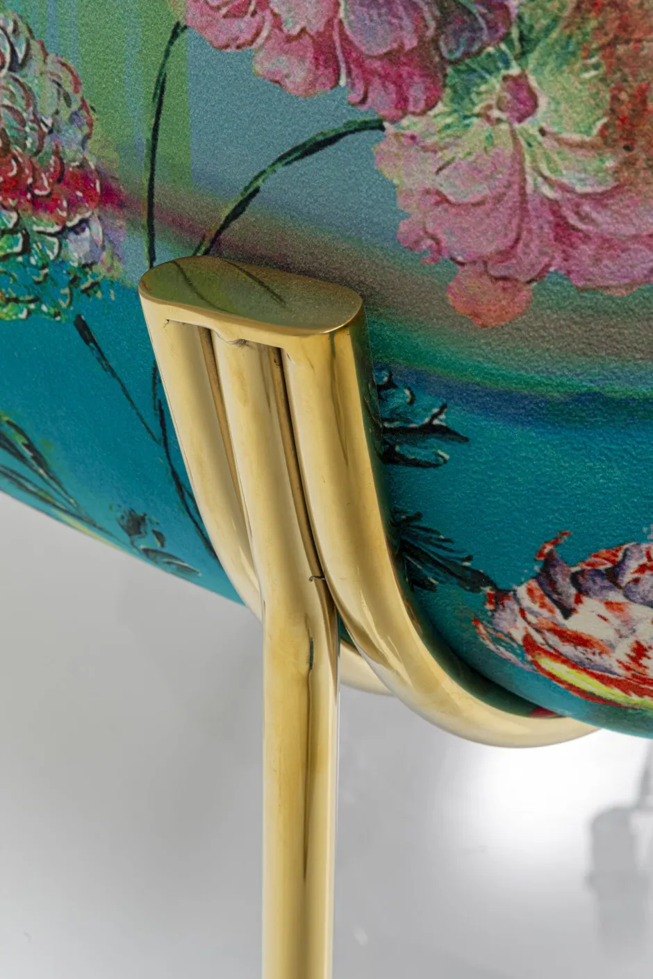 - Gemusterter Cocktail Sessel mit zierlichem goldfarbenen Gestell und Beinen und komfortabel gepolsterten, durchgehenden Arm- und Rückenlehnen